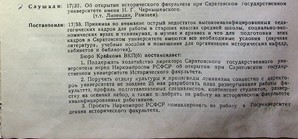Постановление бюро Саратовского крайкома ВКП(б) «О выполнении решения ЦК об открытии исторического факультета СГУ к 15 сентября» (протокол от 13 сентября 1935 г. № 92).