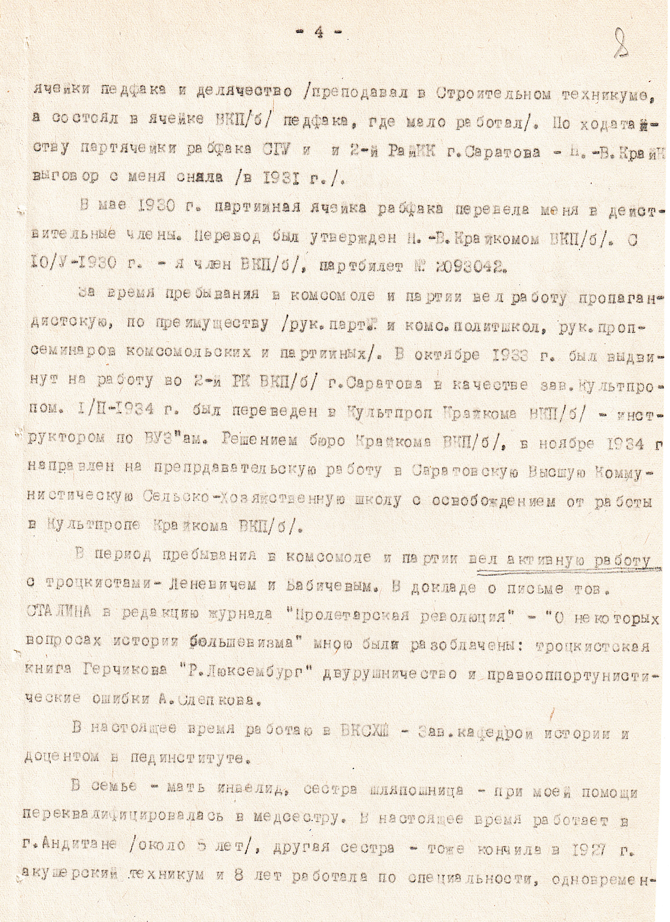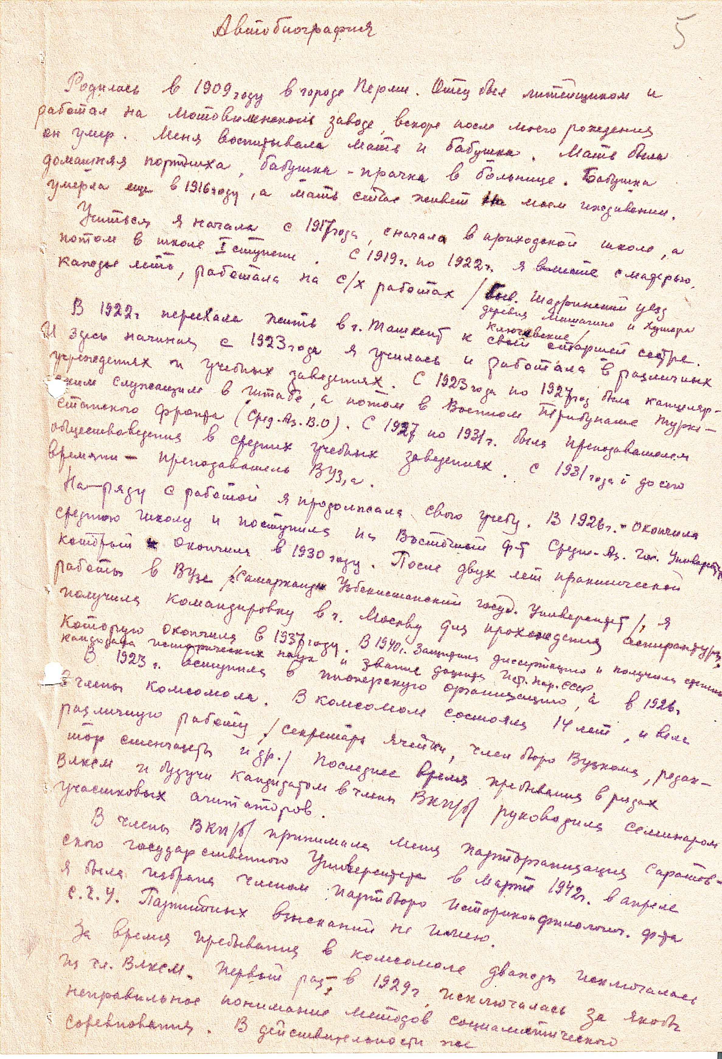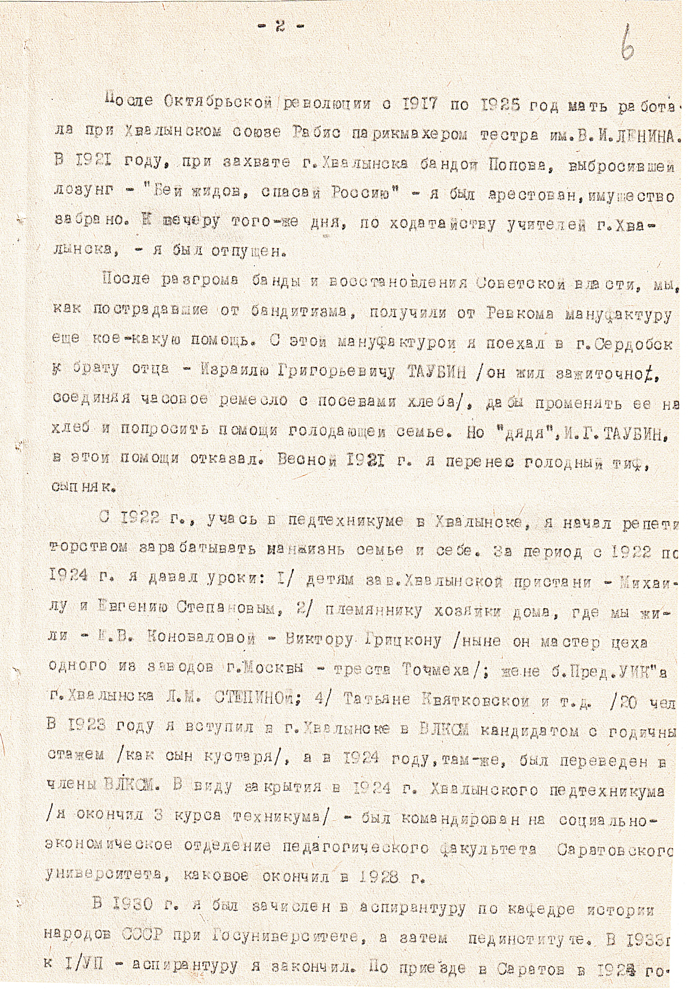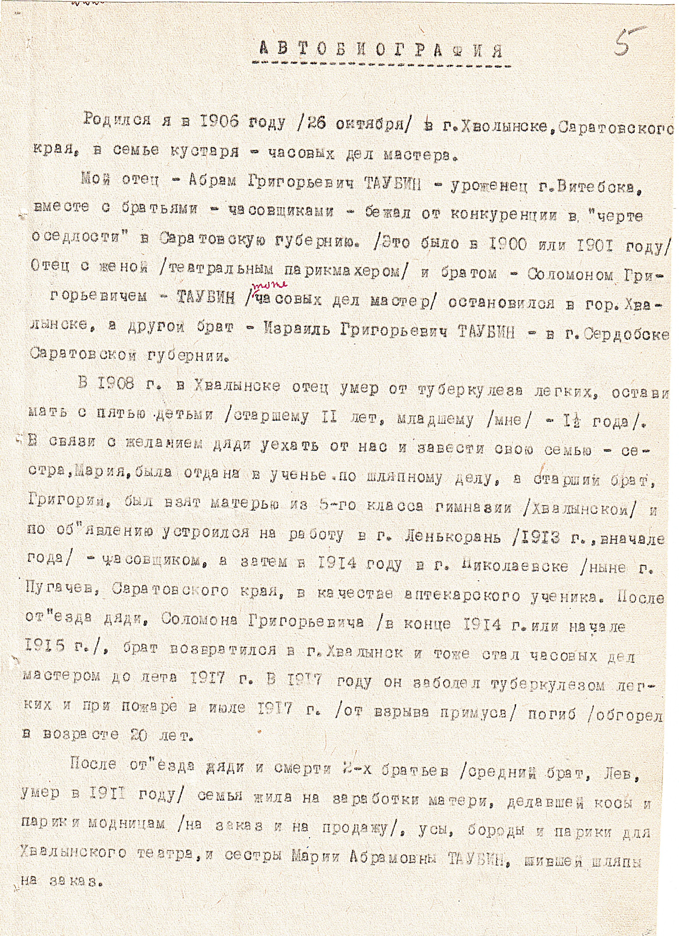 Автобиография Таубина Рафаила Абрамовича (из личного дела работника, состоящего на номенклатурном учёте обкома партии).
