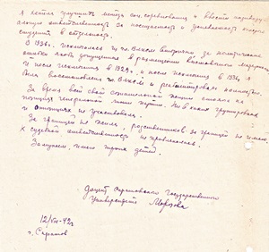 Документы, представленные в предлагаемой подборке, выявлены в материалах Саратовского областного комитета КПСС. Они отражают факты из истории открытия исторического факультета и его деятельности на начальном этапе. Сюда же вошли автобиографии деканов довоенного периода, занимавших пост после П.С. Рыкова. (о нём подробнее в ранее опубликованной подборке документов: https://ogu-ganiso.ru/ex-13.html)