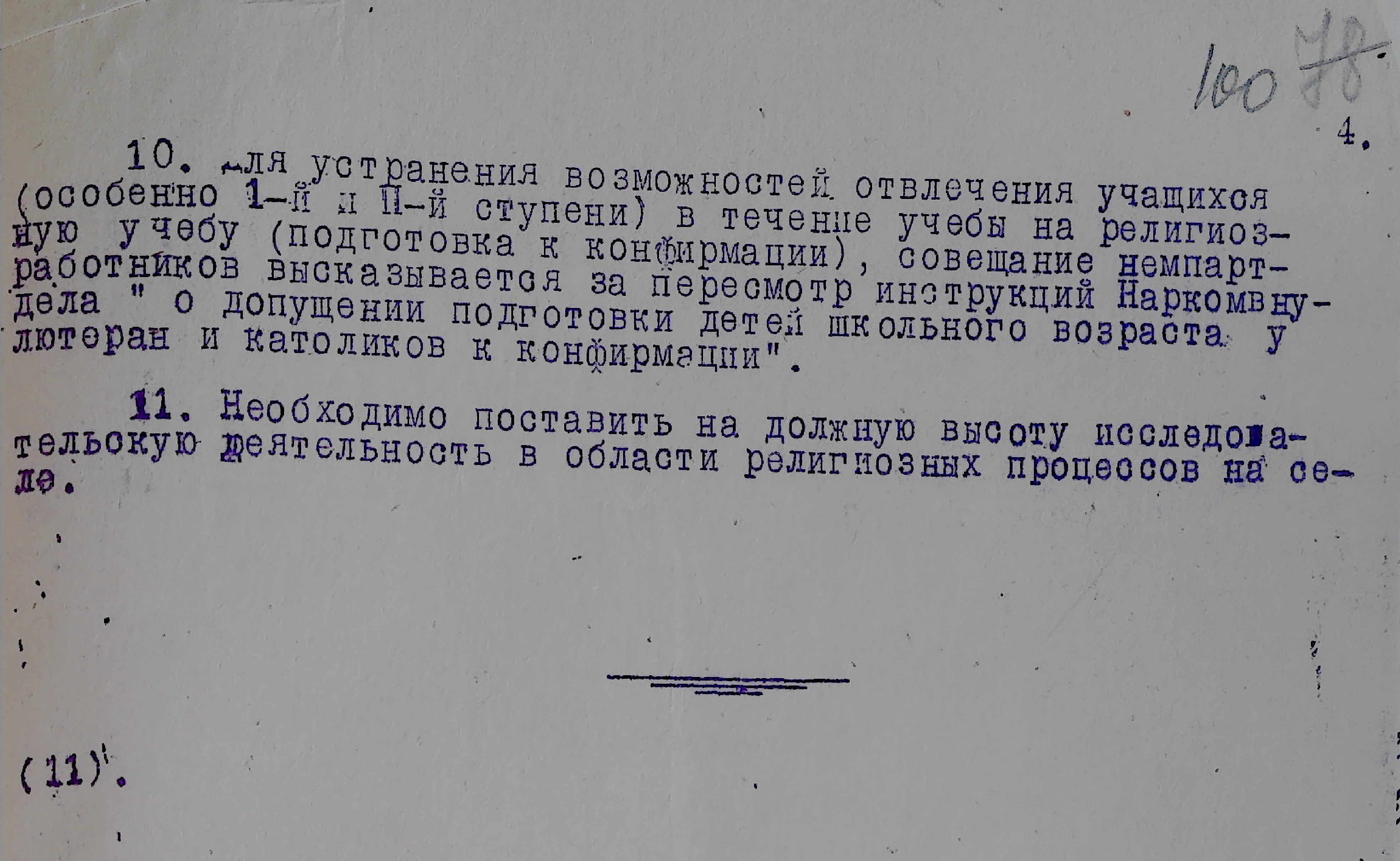 Тезисы для доклада о религиозном движении и задачах антирелигиозной пропаганды в немецком селе.