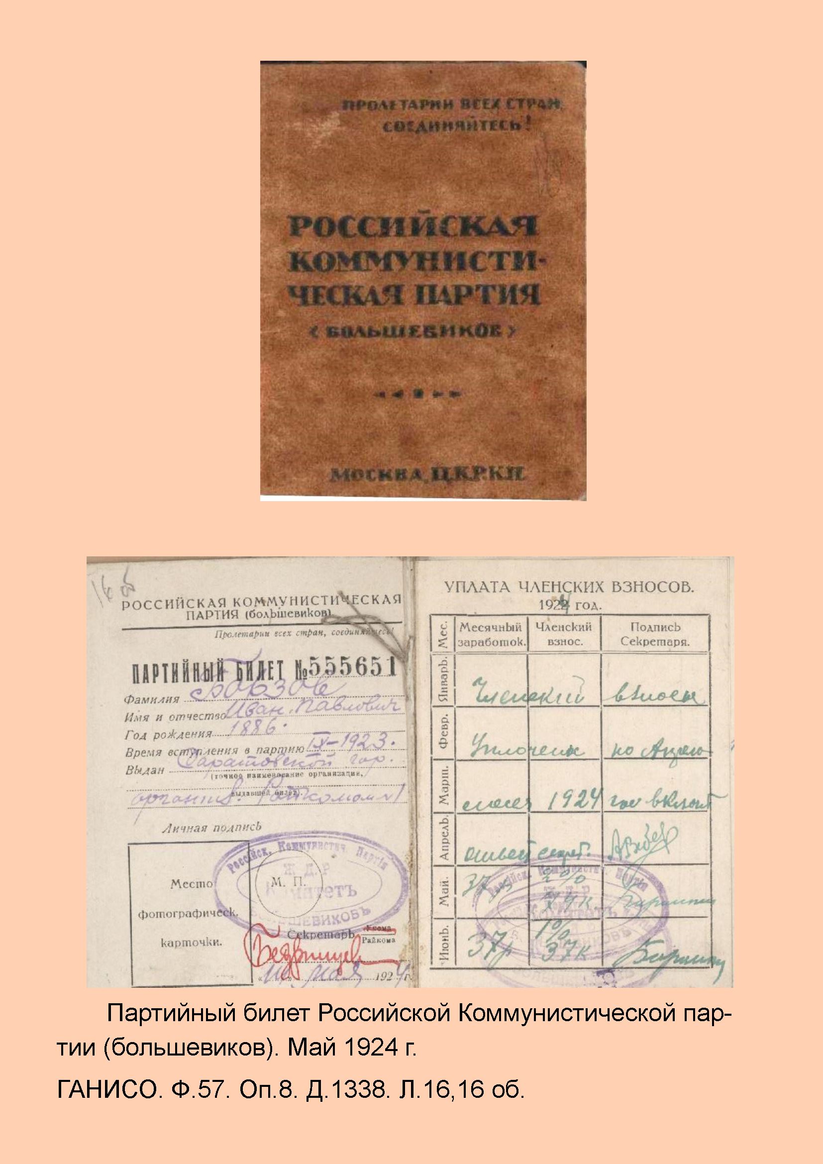 Для подготовки данной выставки были просмотрены документы архивных фондов: Хвалынский уездный комитет РКП(б), Саратовская губерния (Ф. 476); Областной комитет ВКП(б) АССР Немцев Поволжья (Ф.1); Областной комитет ВЛКСМ АССР Немцев Поволжья: (Ф.2); Нижне-Волжская краевая контрольная комиссия ВКП(б), Нижне-Волжский край (Ф.57); Саратовский областной комитет КП РСФСР (Ф. 594); Саратовская областная комиссия по собиранию и изучению материалов по истории партии большевиков – Истпарт (Ф.199); Открытое акционерное общество «Рефлектор» (Ф.514 л/с); Закрытое акционерное общество «Саратовский авиационный завод» ( Ф.6729); Библиотечный фонд (Оп.1)