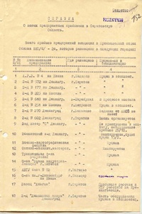 Справка заведующего промышленным отделом Саратовского обкома ВКП(б) В.Я. Герасимова о предприятиях, эвакуированных в область в первые месяцы войны