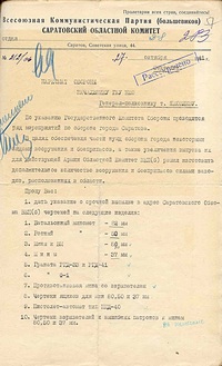 Циркулярное письмо начальника областного штаба МПВО – секретаря Саратовского обкома ВКП(б) Е.П. Колущинского и начальника управления НКВД по Саратовской области В.Г. Викторова в райкомы партии и райотделы НКВД об организации штабов местной противовоздушной обороны и истребительных отрядов для борьбы с вражескими диверсантами