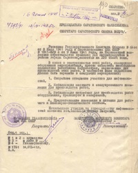 Постановление Саратовского городского комитета обороны № 1сс о возведении оборонительных рубежей вокруг Саратова