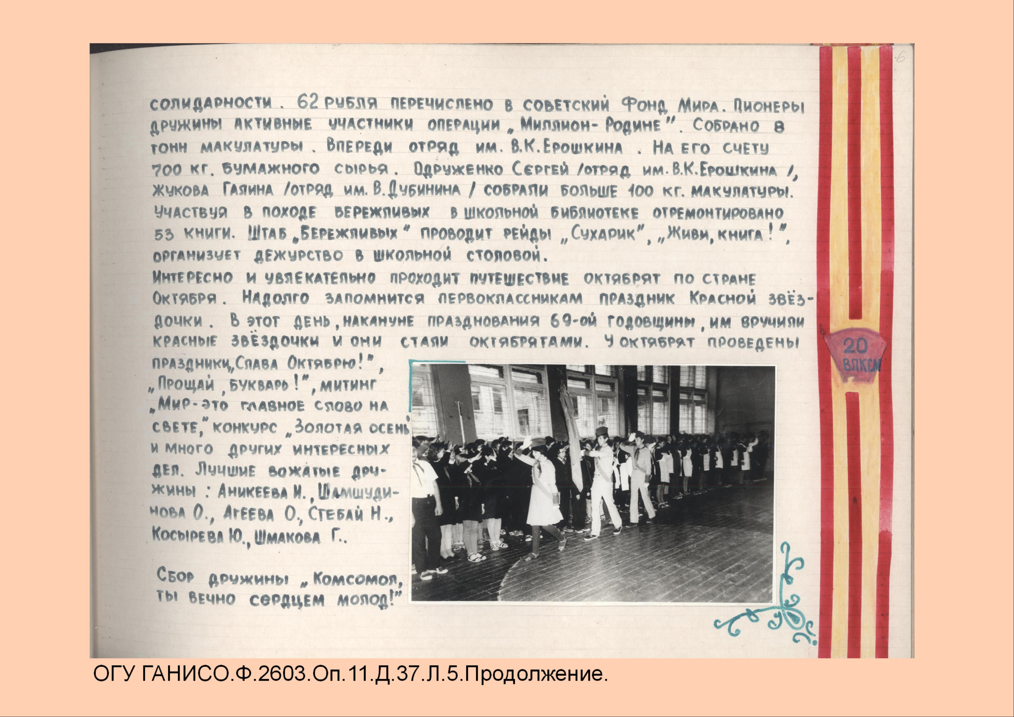 Для учеников, как один из главных субъектов образования, организовывали разнообразную образовательную и общественную деятельность, которая способствовала всестороннему развитию личности. А формирование ощущения причастности к строительству «светлого будущего» занимало одно из центральных мест в работе школ.