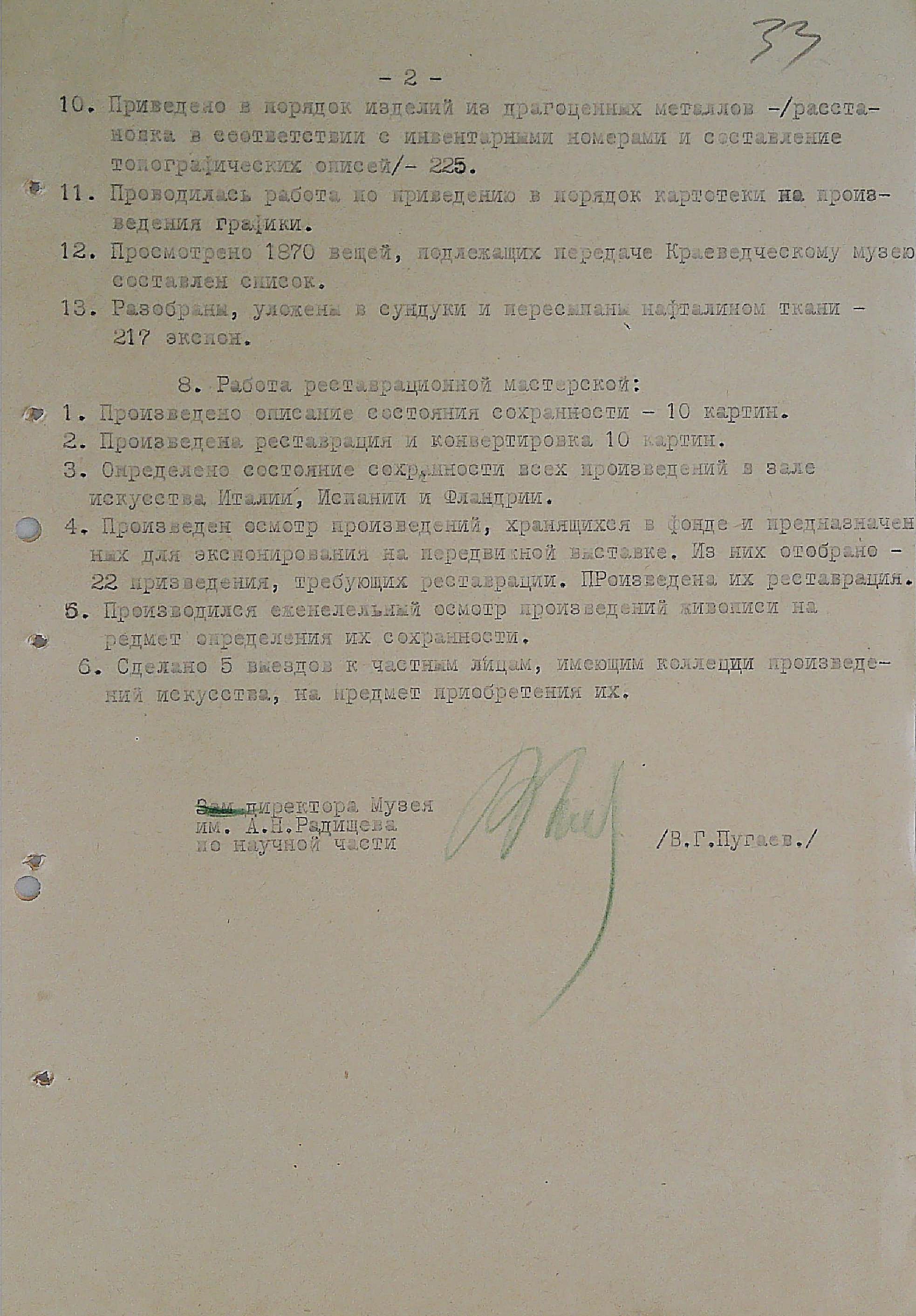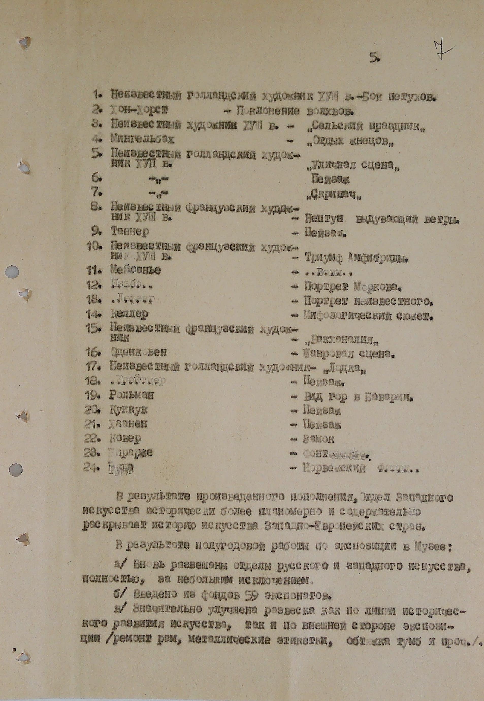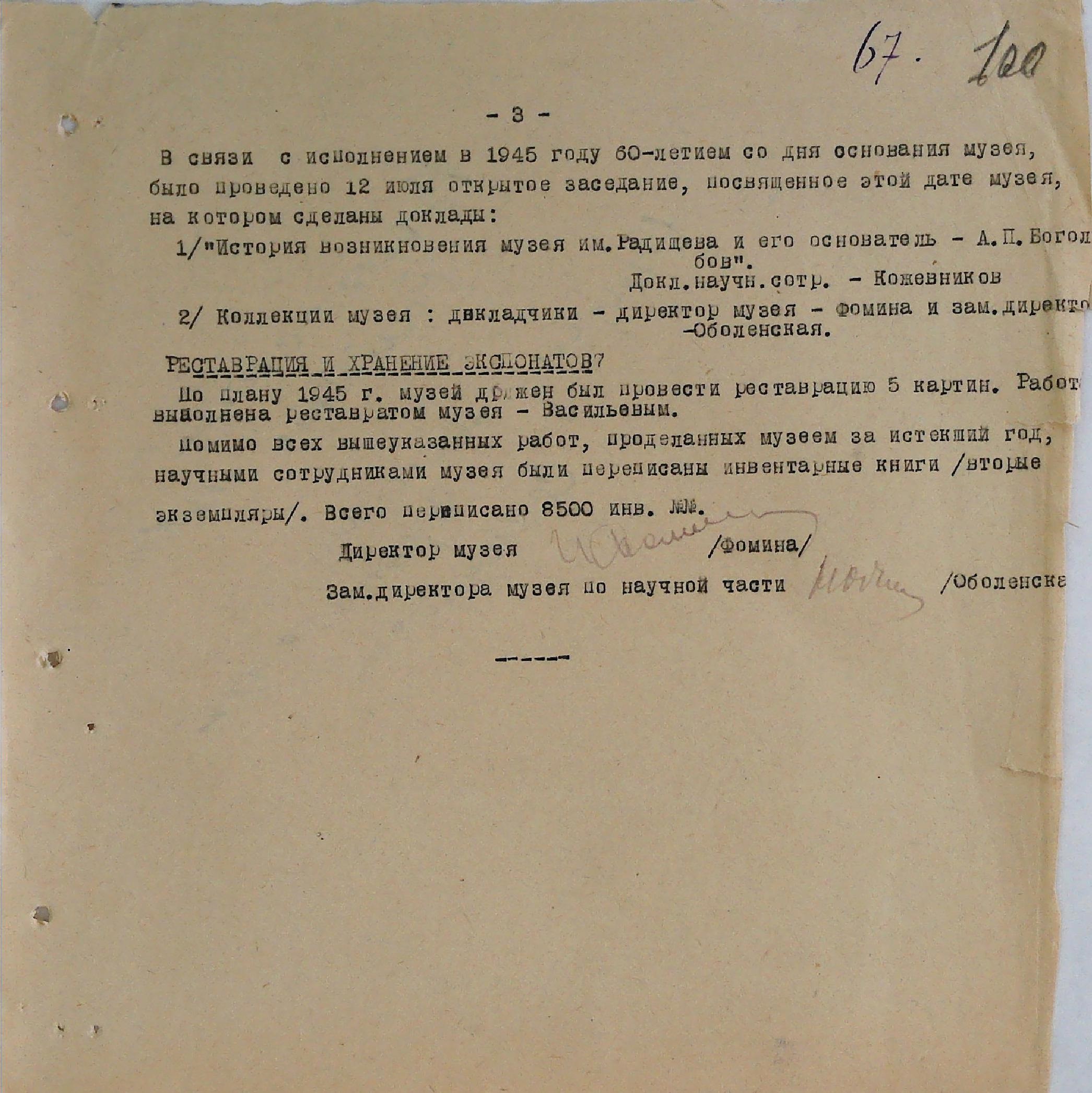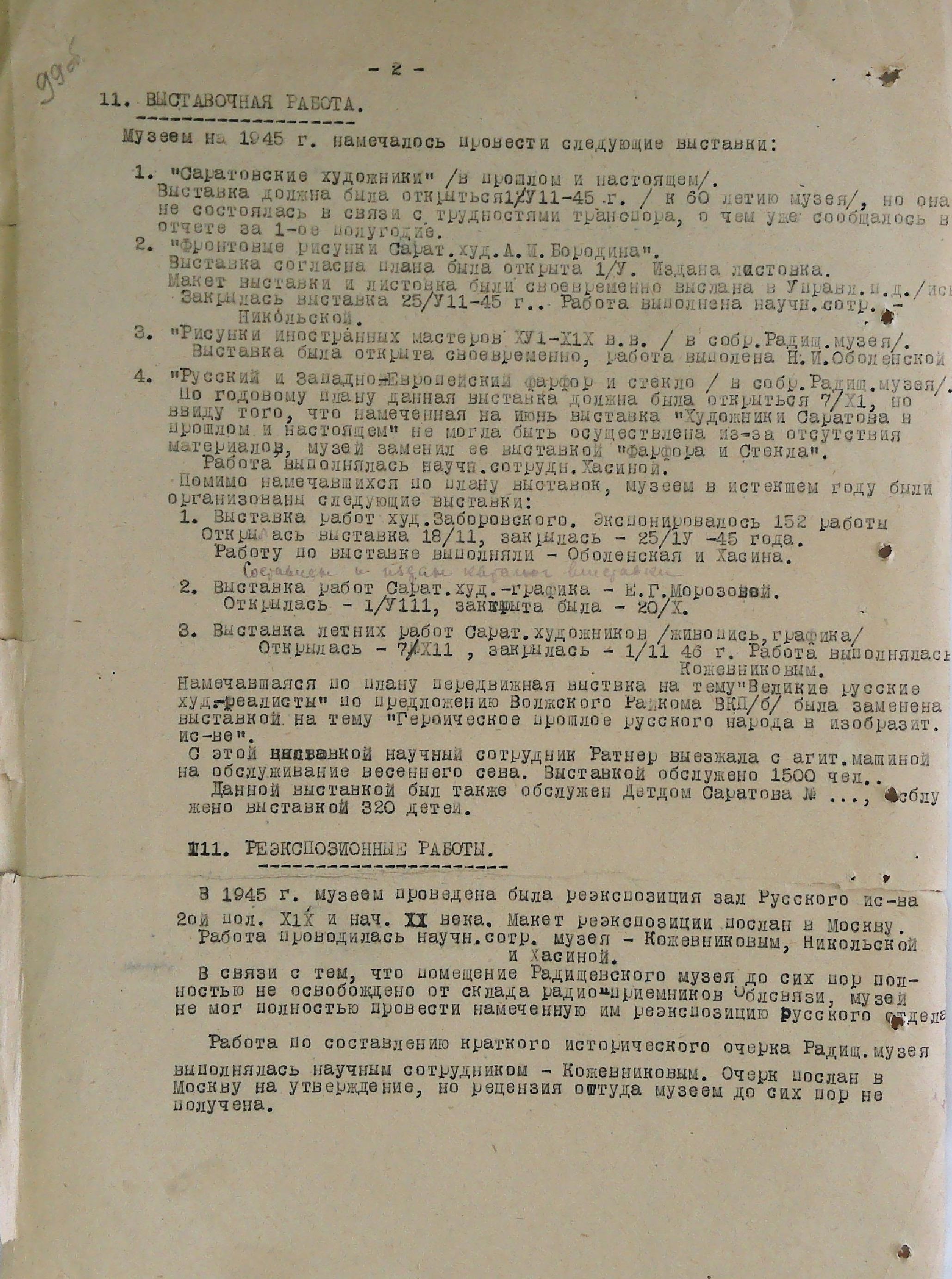 Отчёт о работе Саратовского государственного художественного музея им. А.Н. Радищева в 1945 г.