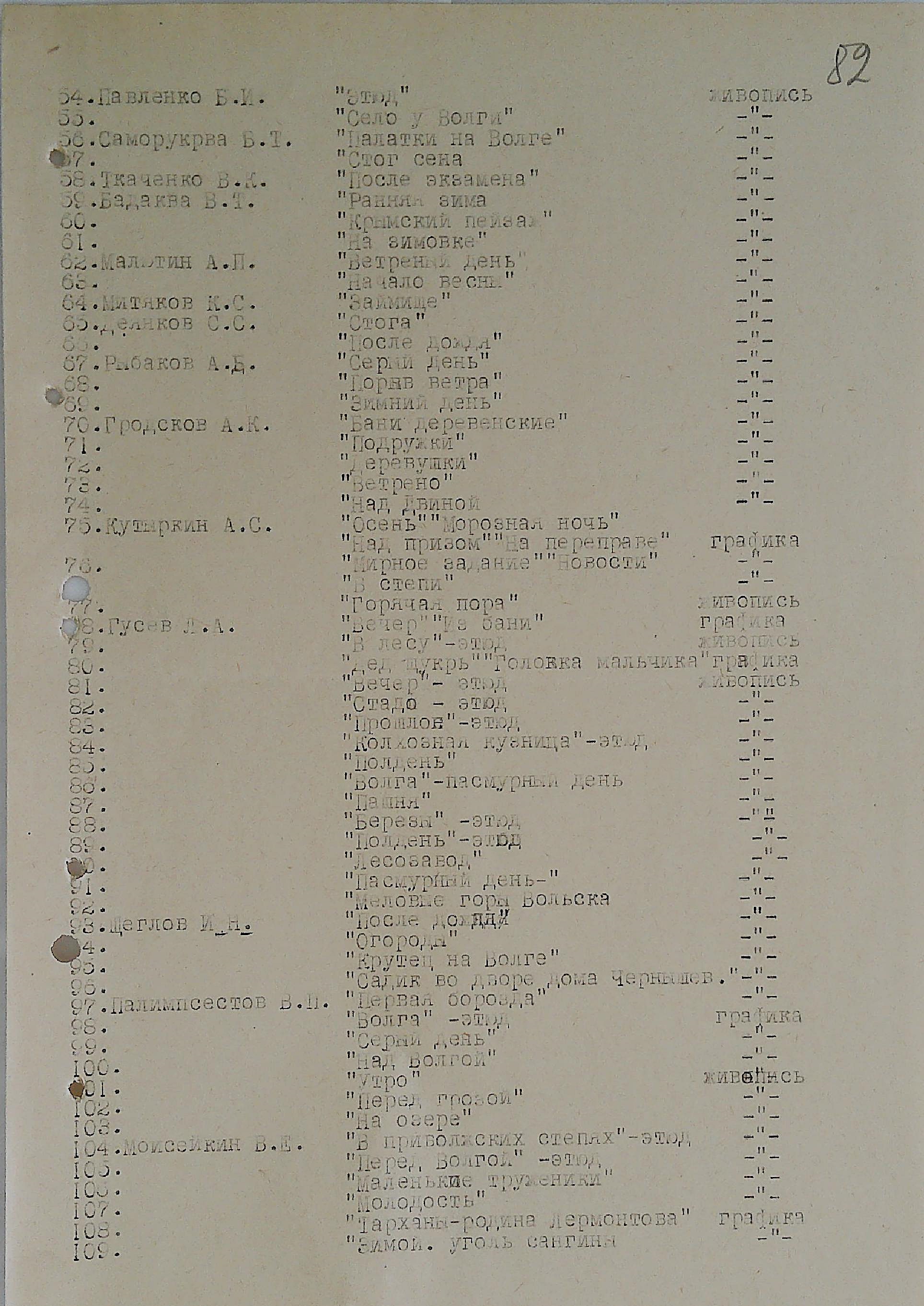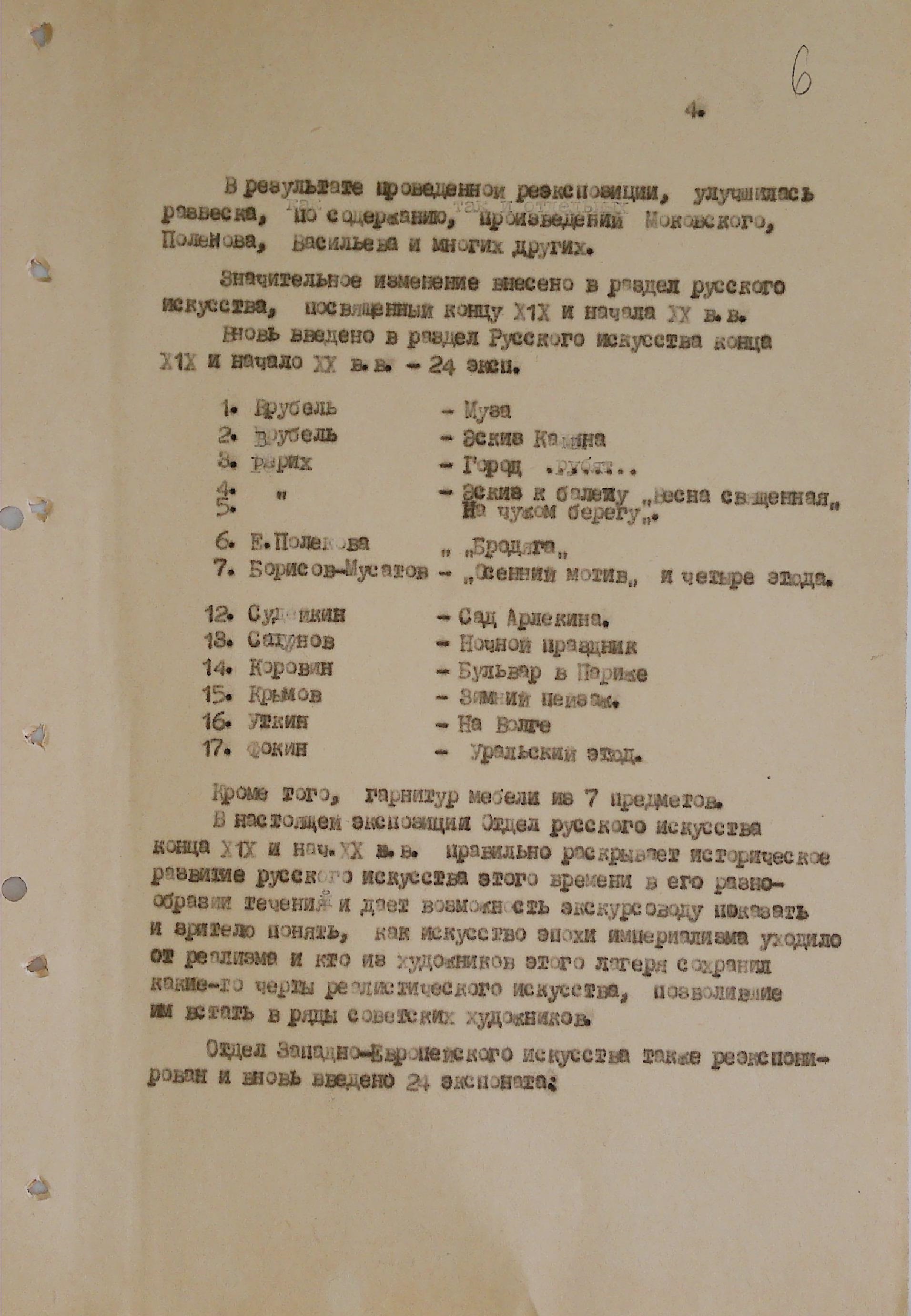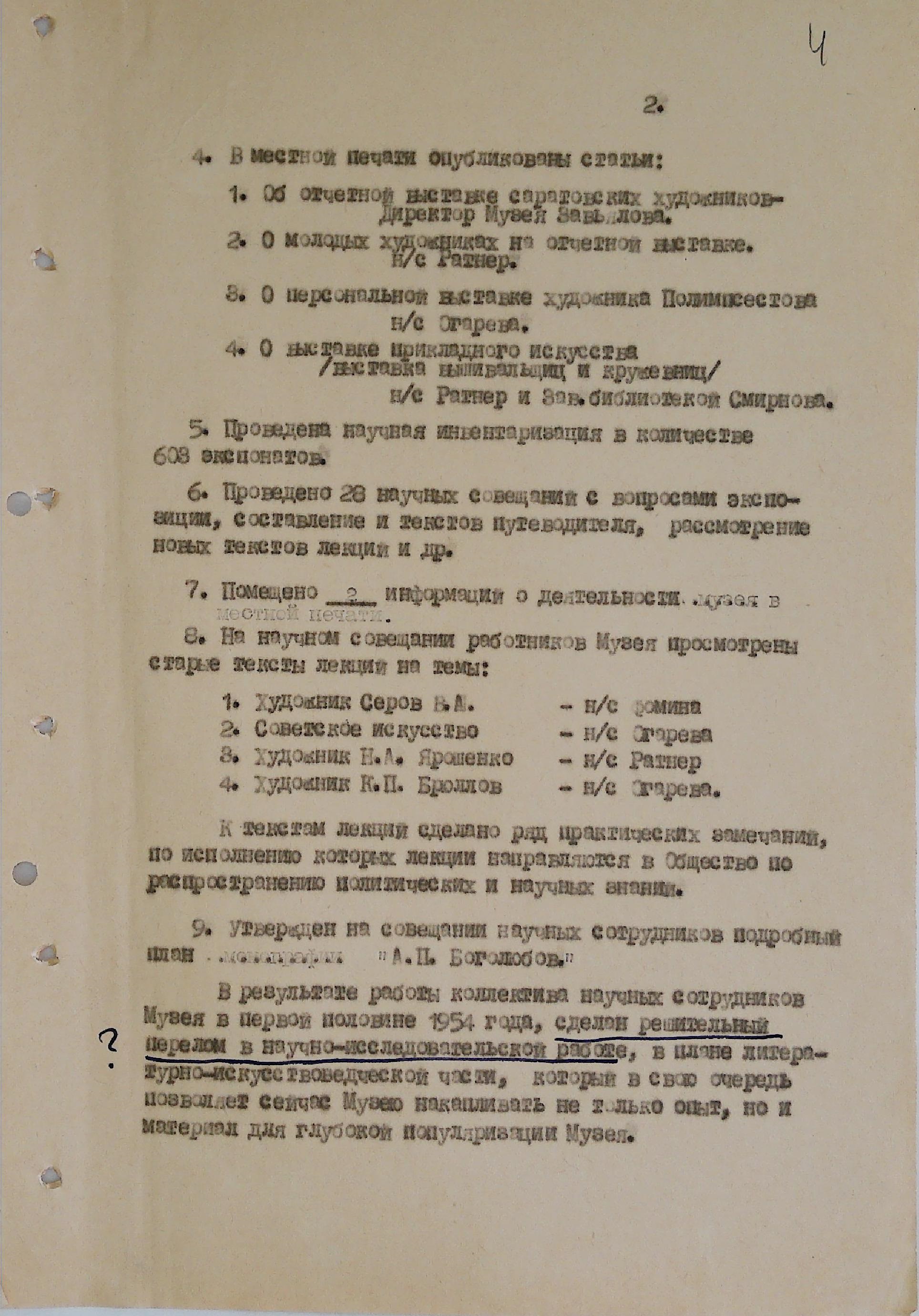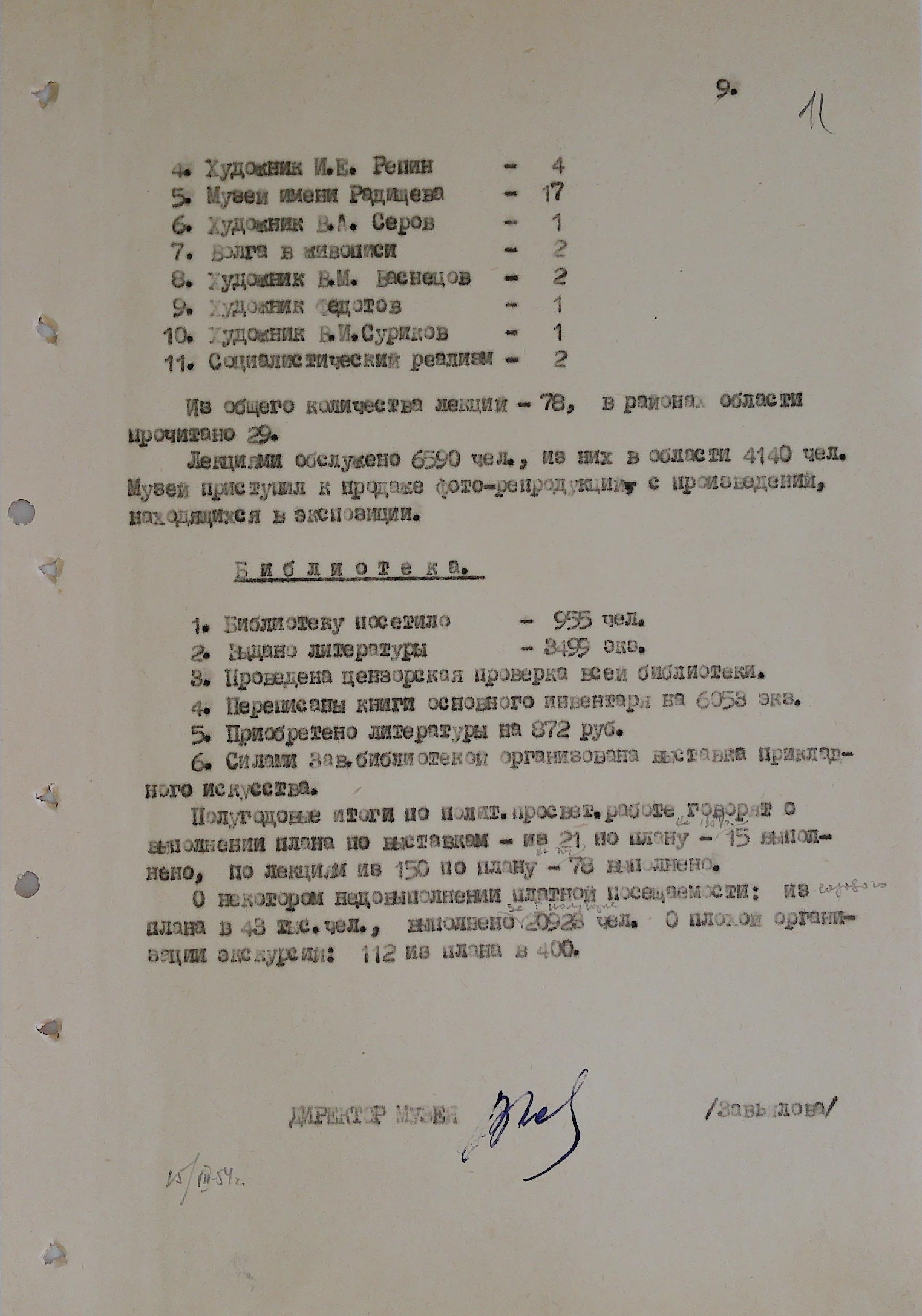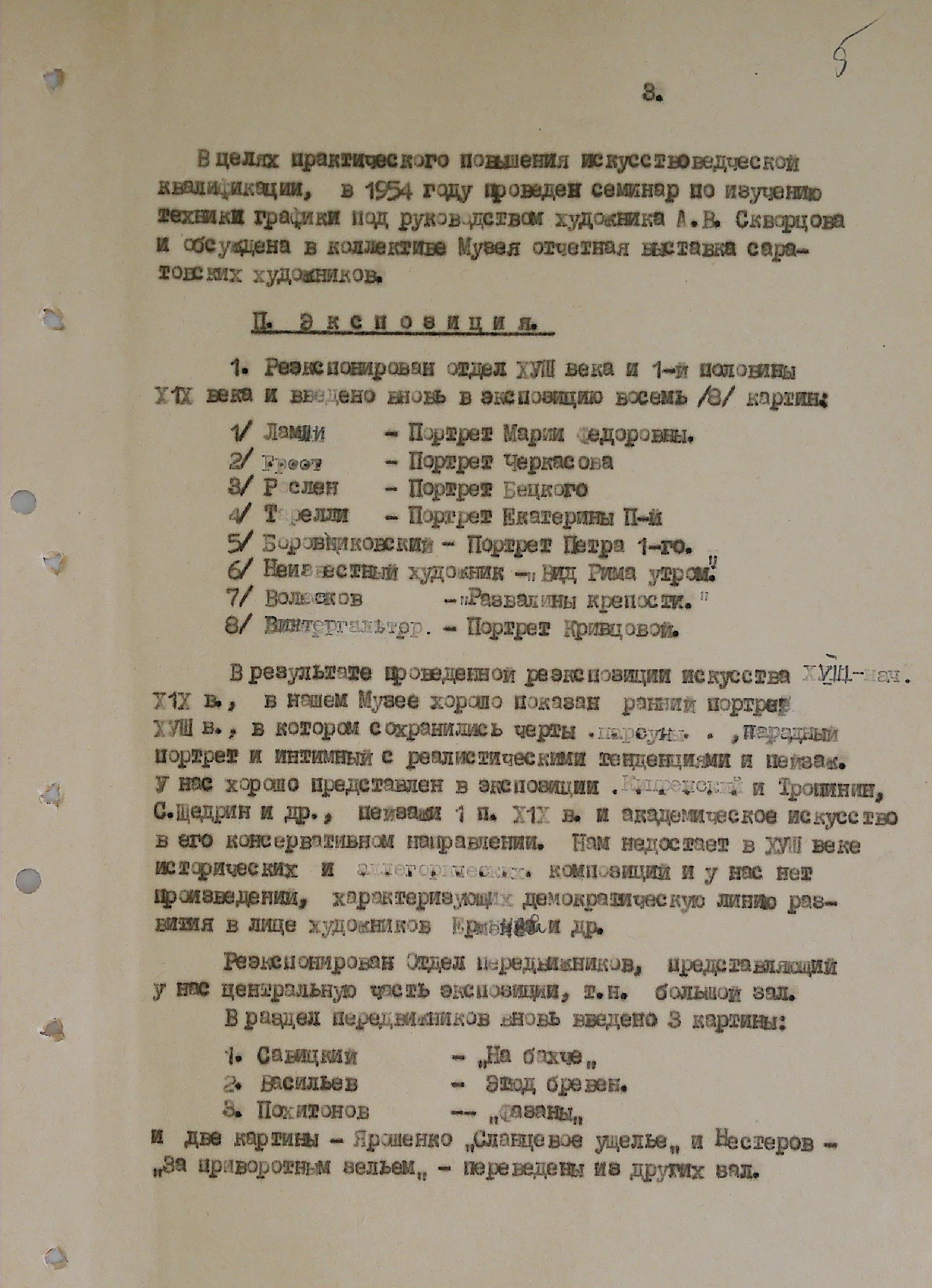 Отчёт Саратовского государственного художественного музея им. А.Н. Радищева о работе за первую половину 1954 г.
