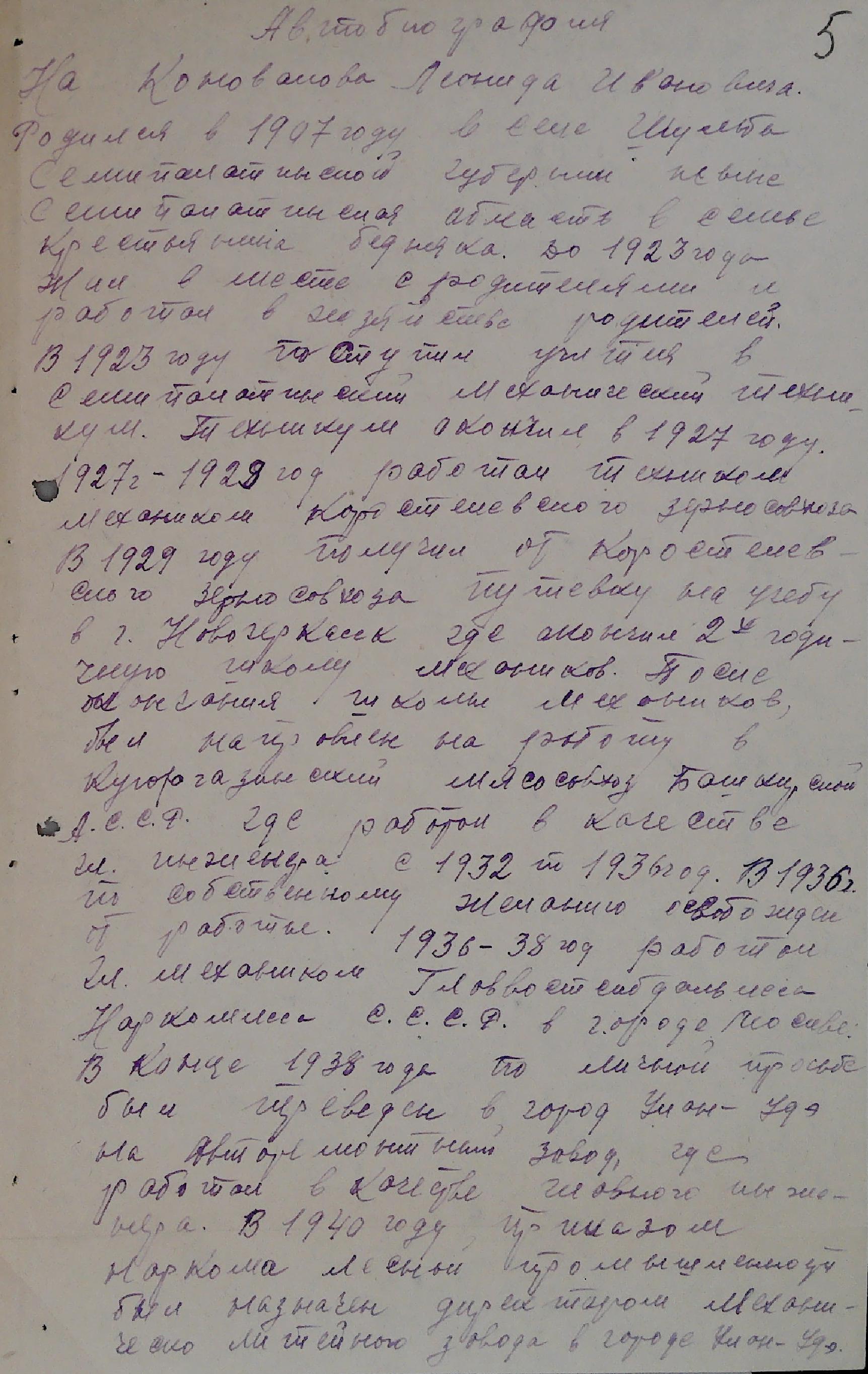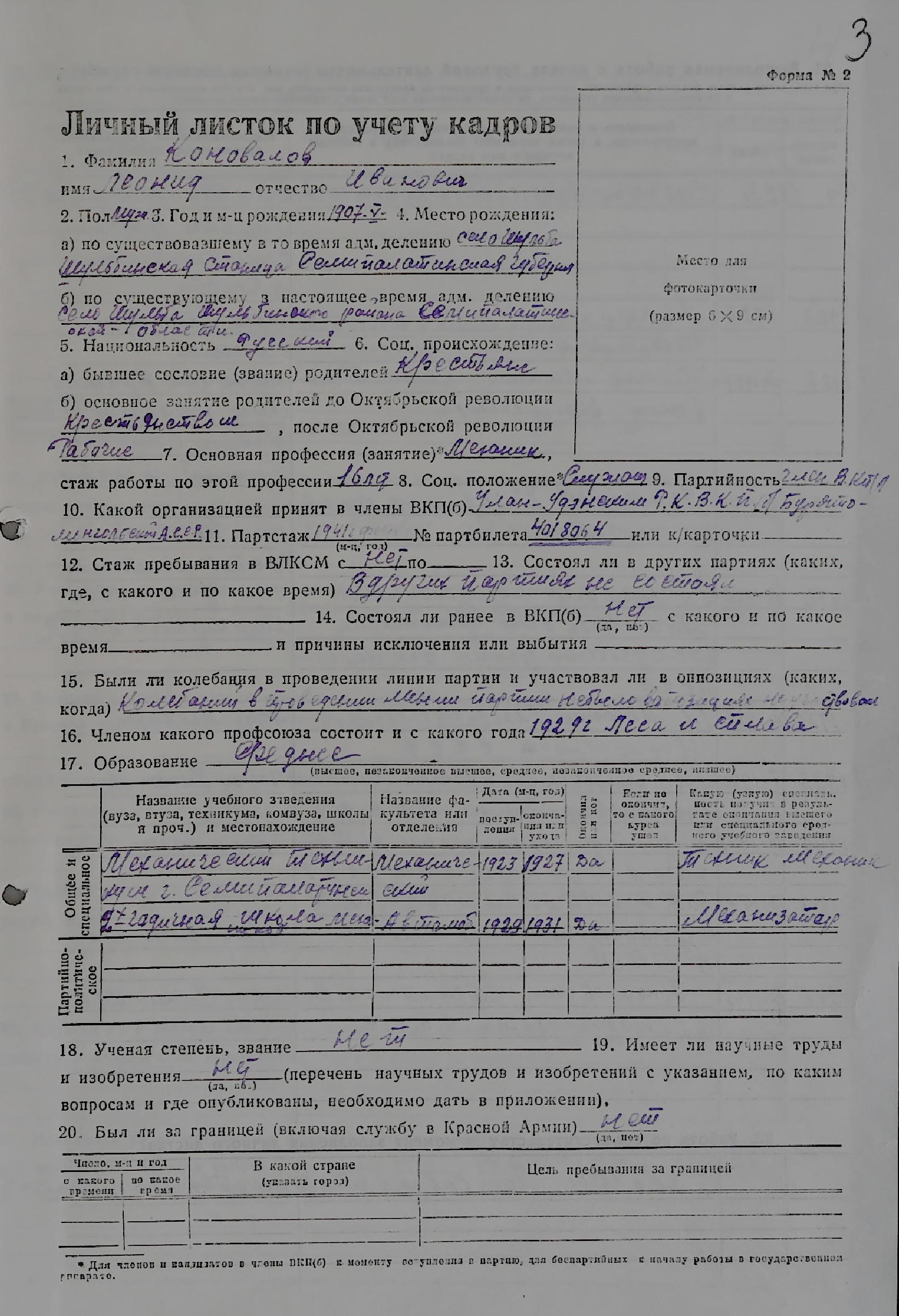 В документах архивного фонда Саратовского областного комитета КПСС выявлено личное дело по учету кадров Коновалова Леонида Ивановича, 1907 г.р., содержащее личный листок по учету кадров и автобиографию.
