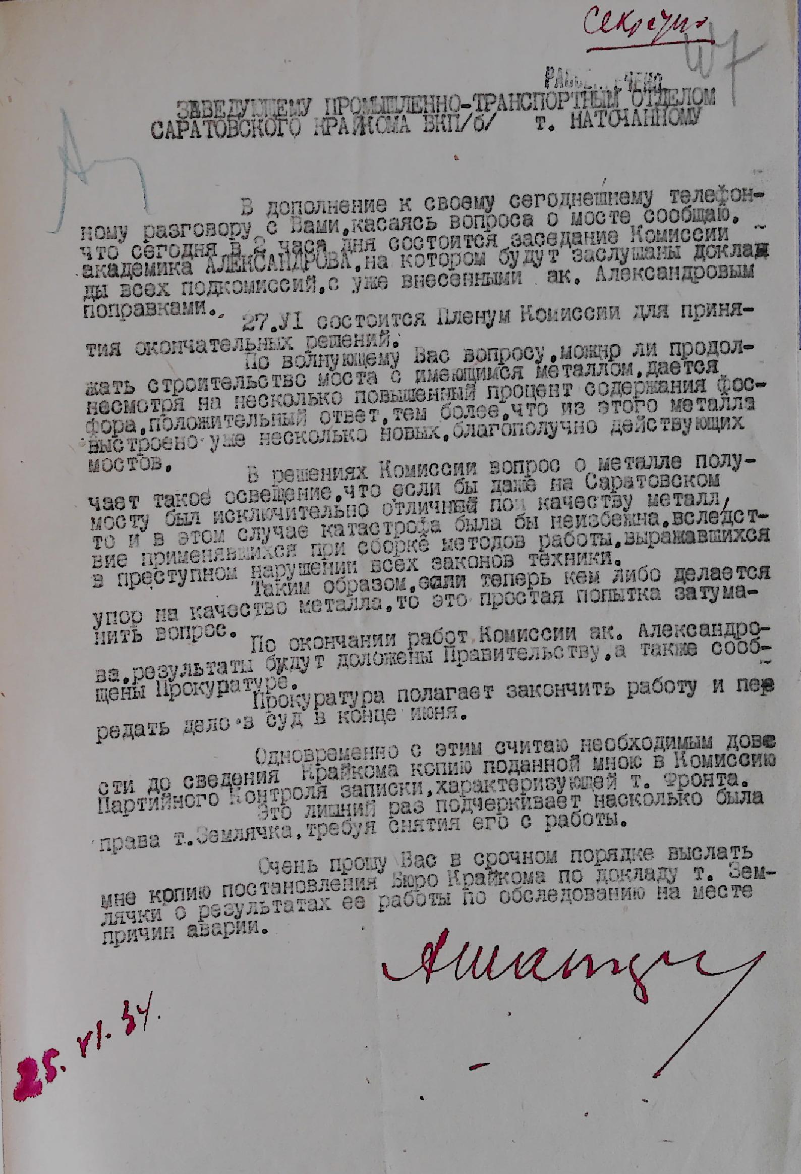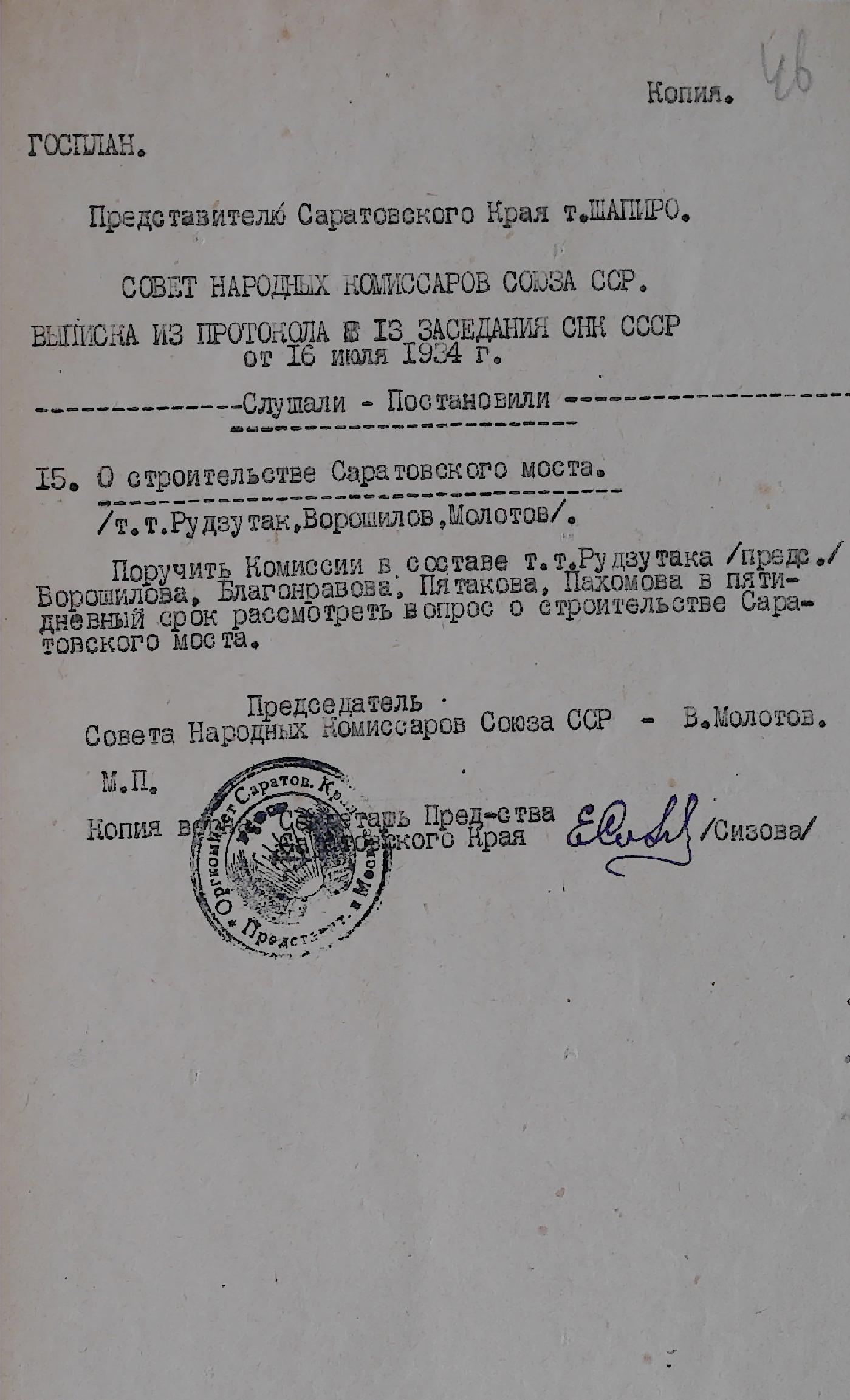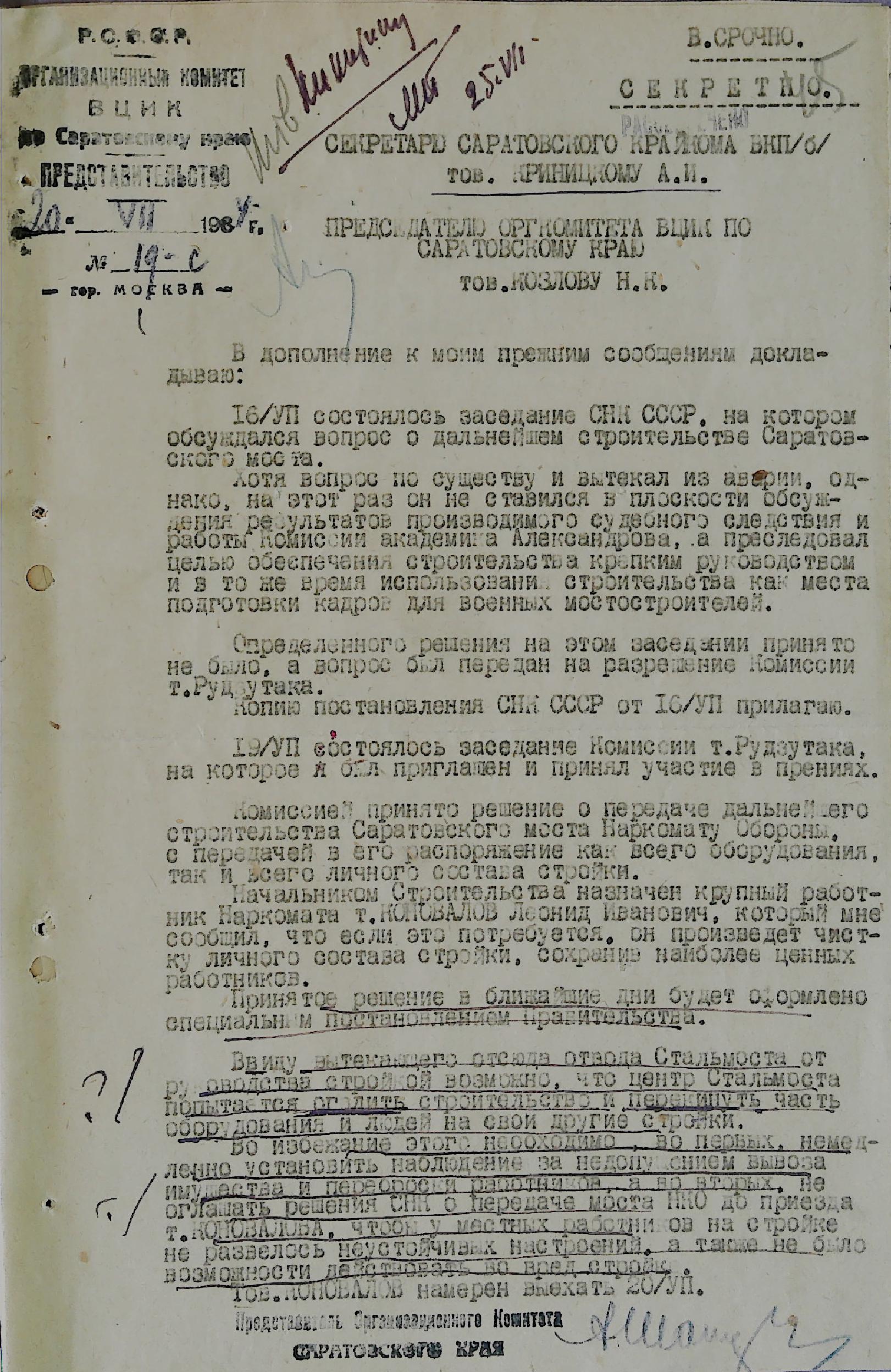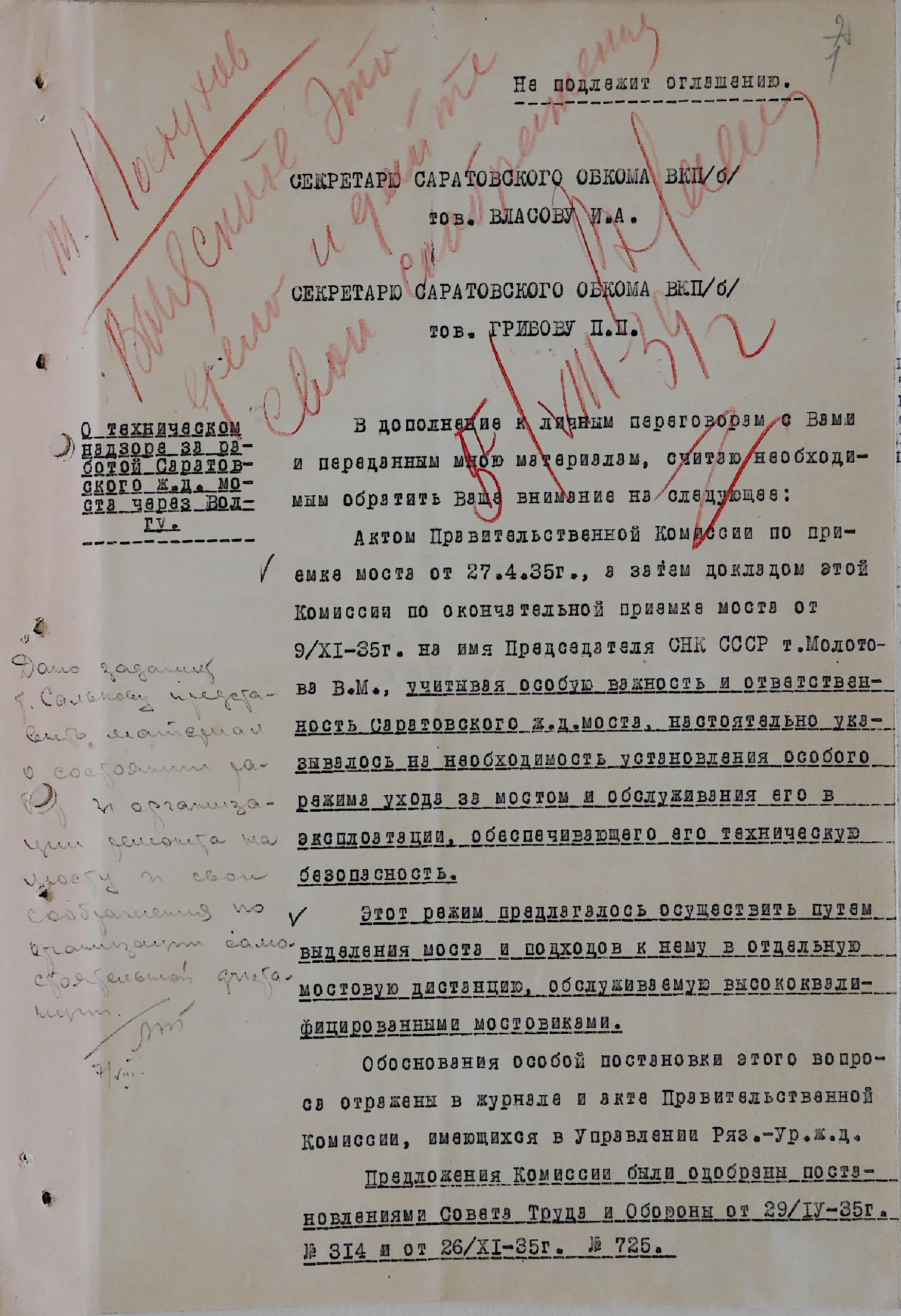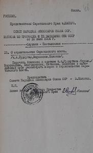 Представляем Вашему вниманию виртуальную подборку документов ОГУ ГАНИСО, посвященную строительству Саратовского железнодорожного моста. В состав данной публикации вошли материалы, выявленные в архивном фонде Саратовского областного комитета КПСС [Ф. 594] за 1930-1935 г.