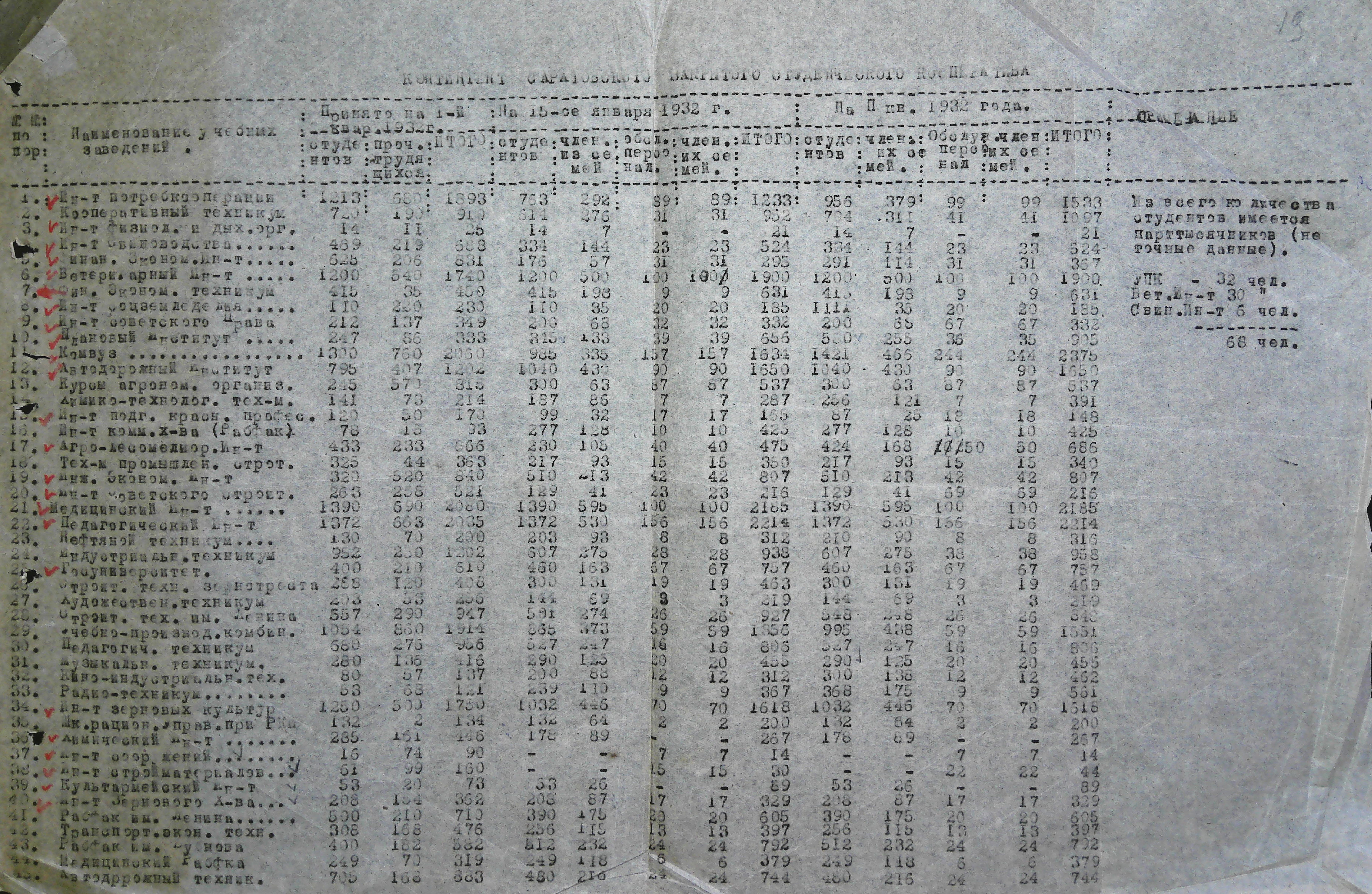 В II квартале 1932 г. от Саратовского медицинского института значится 2185 членов закрытого студенческого кооператива.
