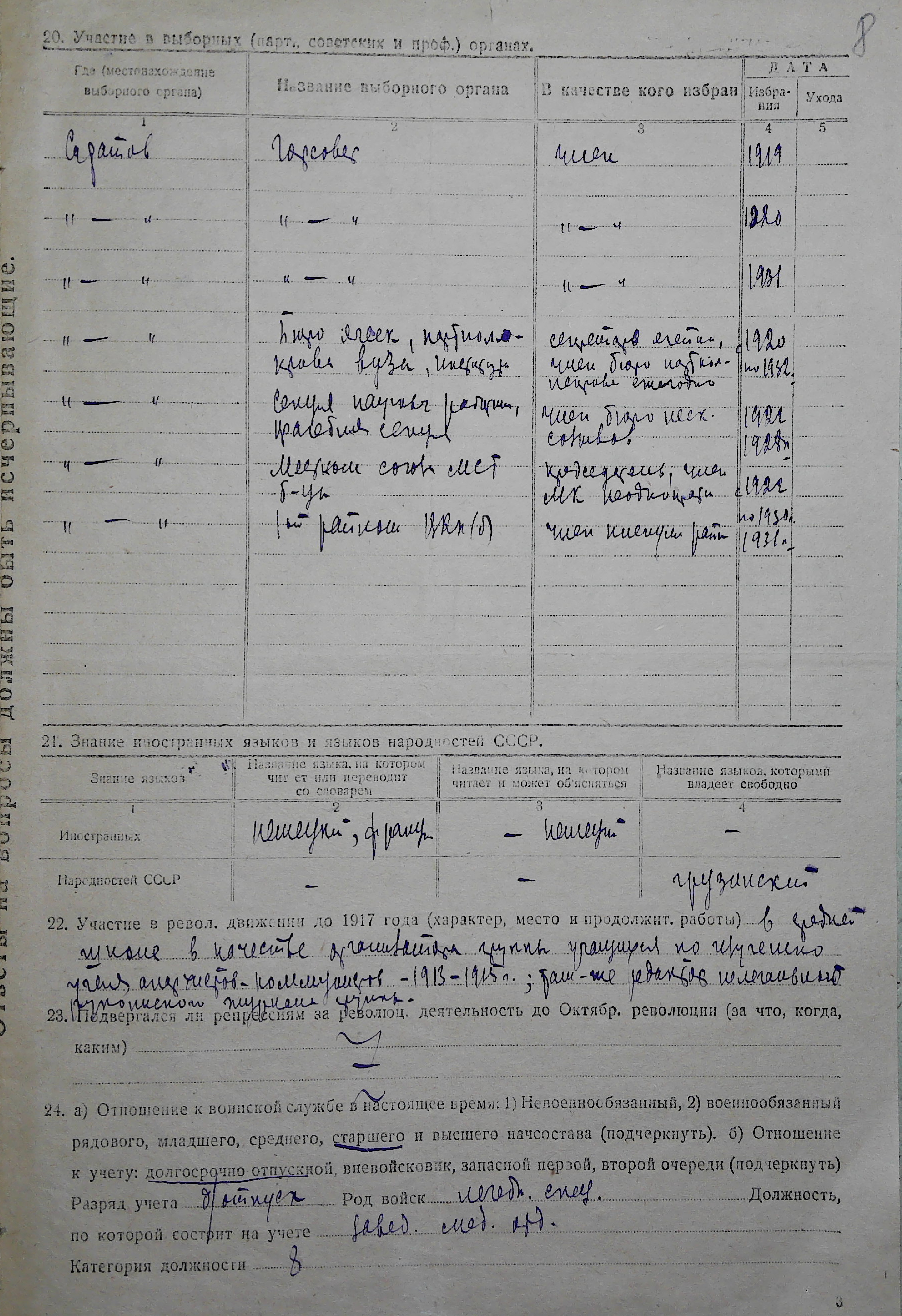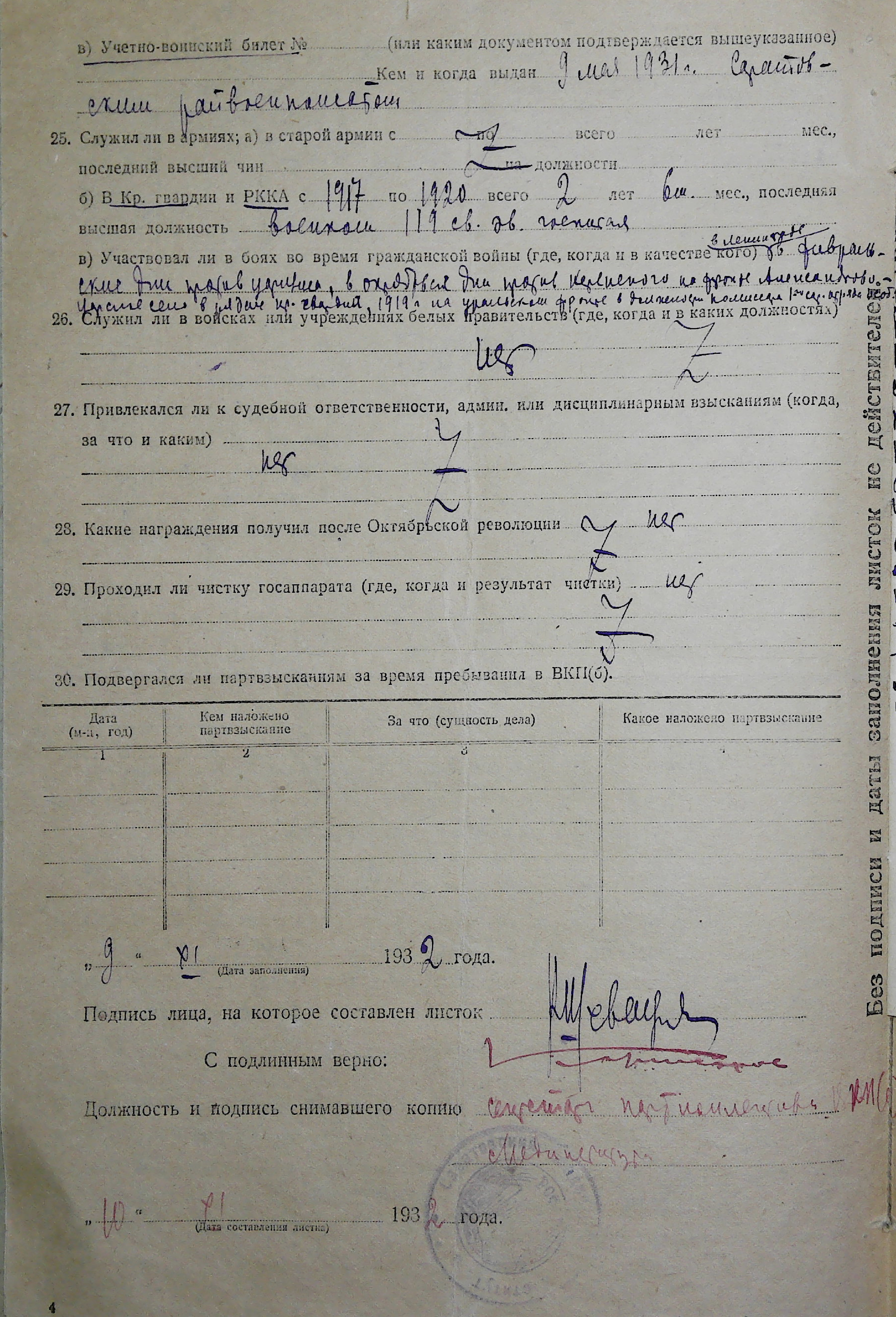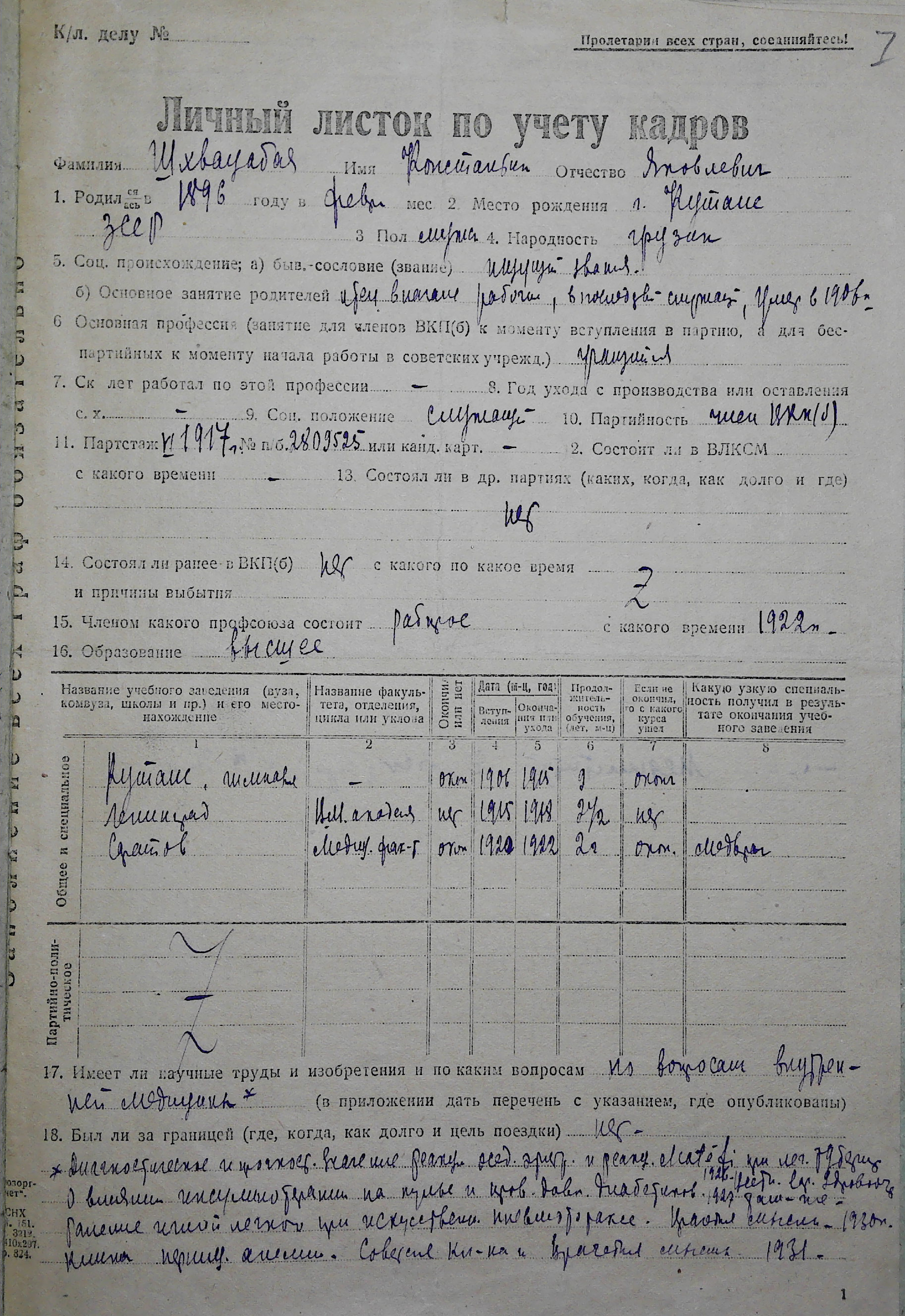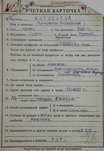 Личный листок по учету кадров на Шхвацабая К.Я. (из личного дела номенклатурного работника).