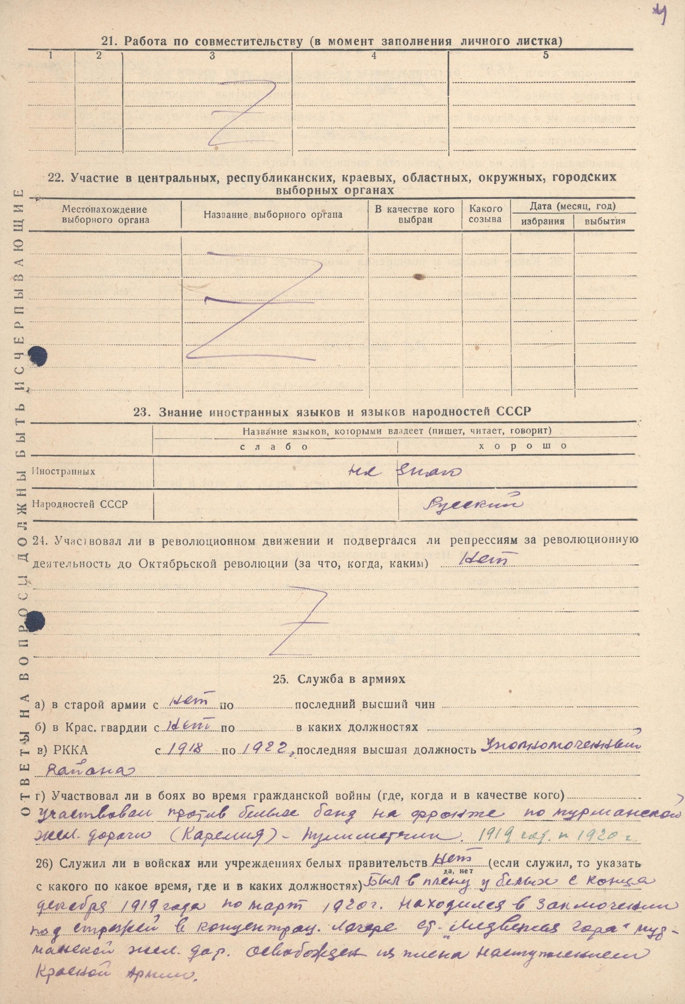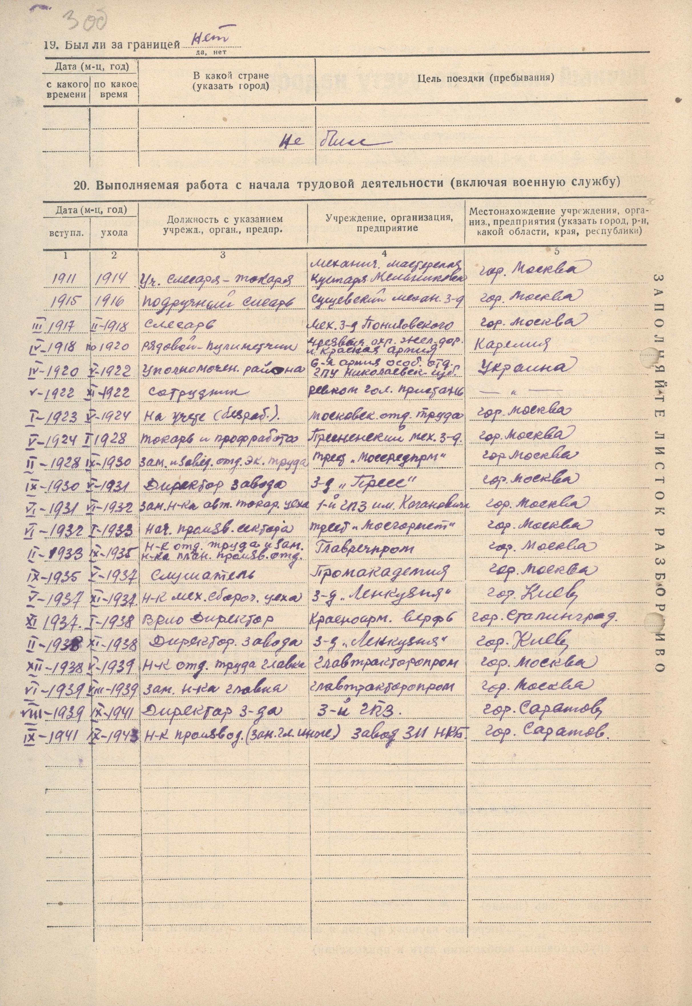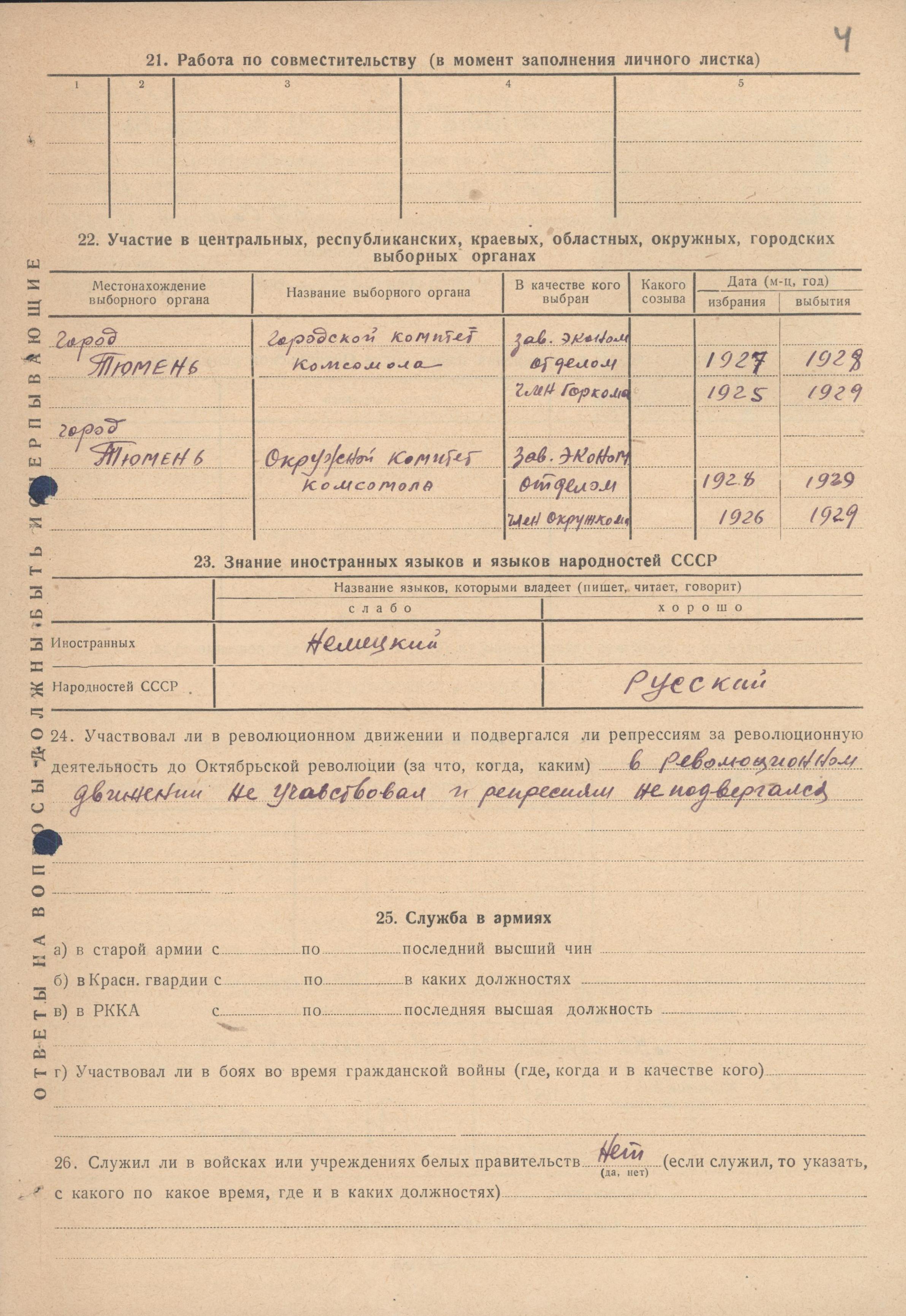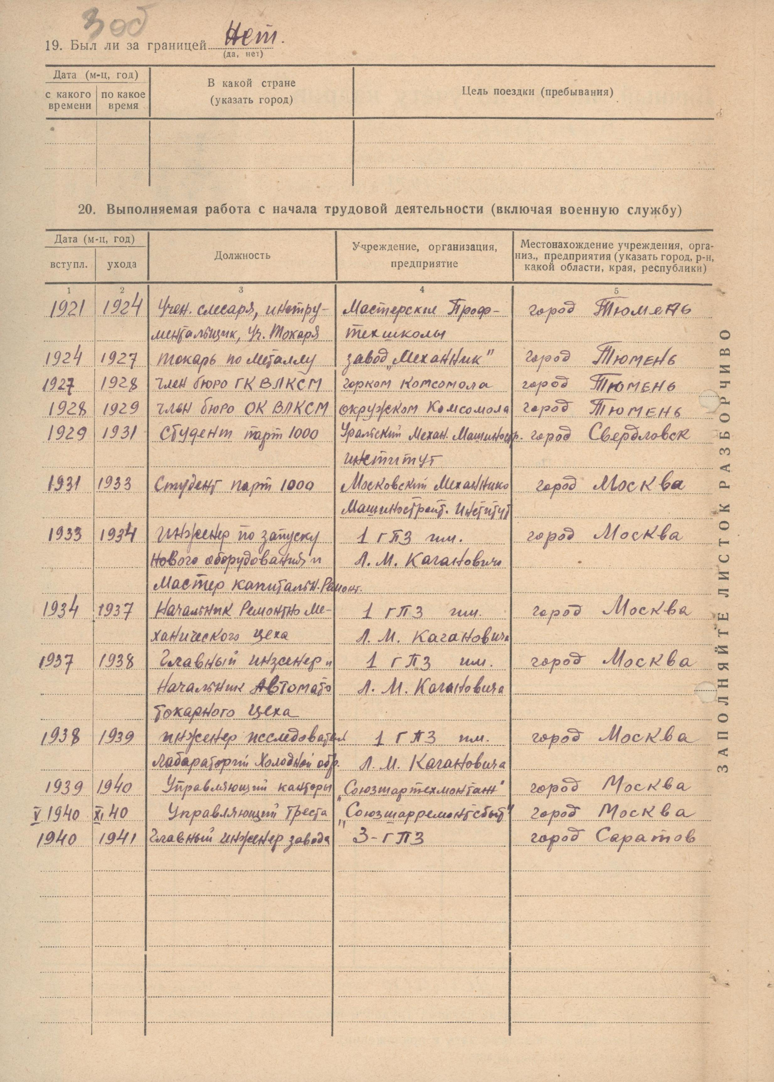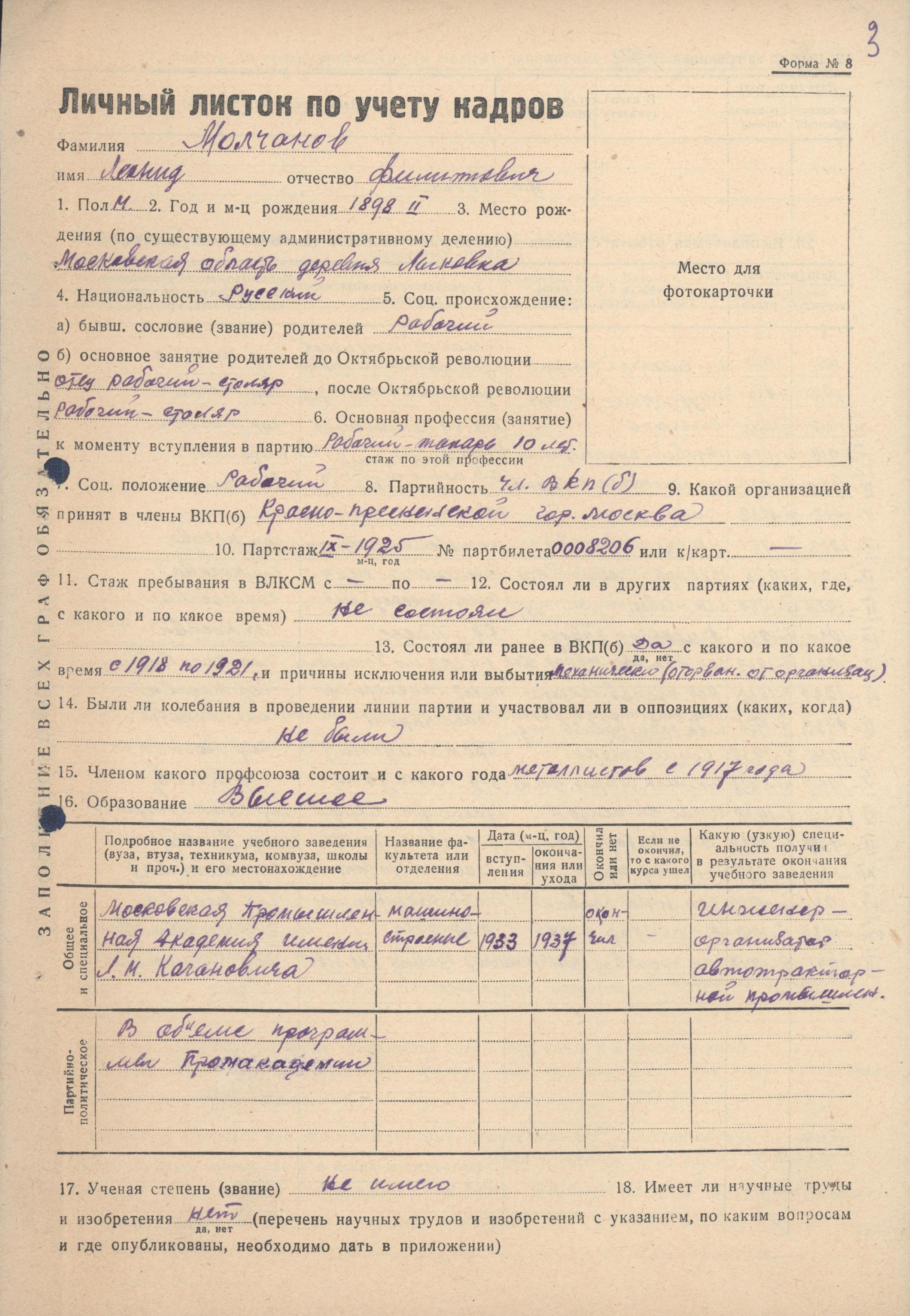 Личный листок по учету кадров Молчанова Л.Ф. (из личного дела номенклатурного работника)