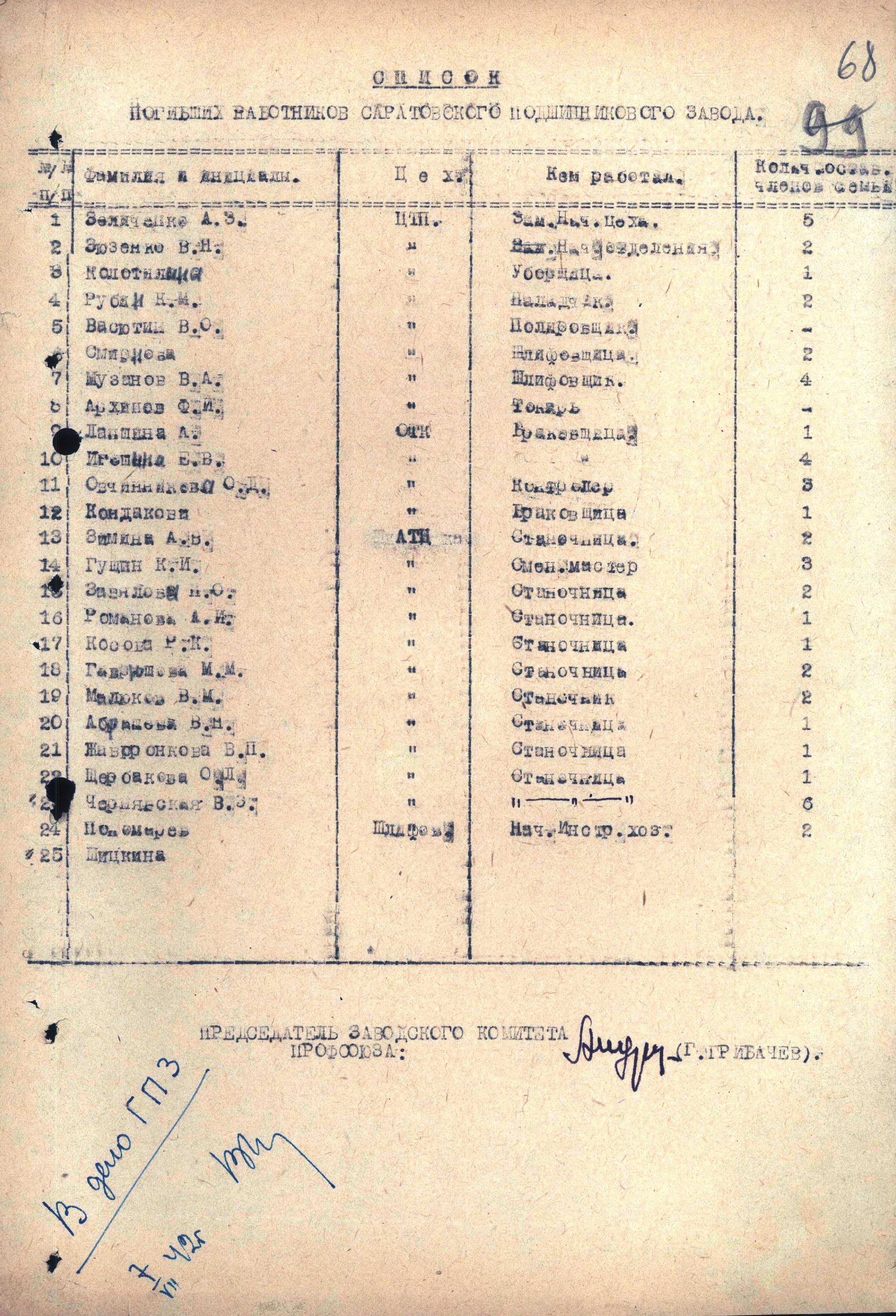 Список погибших работников Саратовского подшипникового завода.