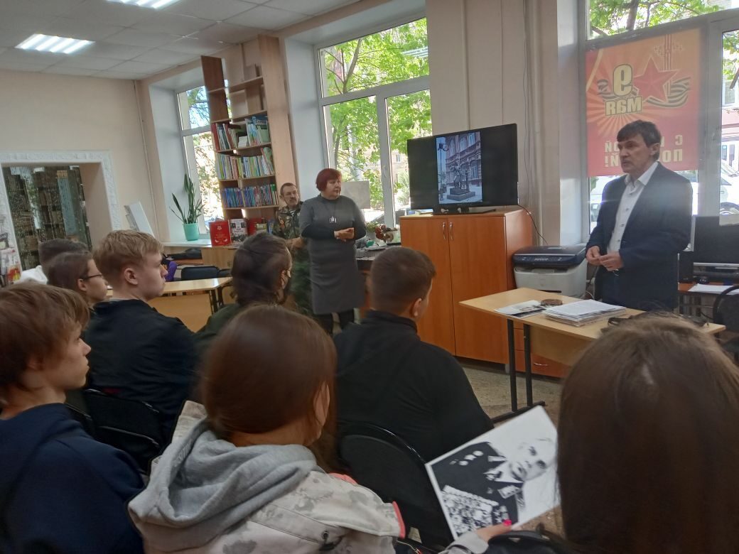 В преддверии 77-й годовщины Победы в Великой Отечественной войне, начальник отдела ОГУ «Государственный архив новейшей истории Саратовской области» Сергеев М.В. в помещении Центральной городской библиотеки для детей и юношества выступил перед студентами ГАПО СО «Саратовский архитектурно-строительный колледж» об участии наших земляков в Великой Отечественной войне 1941-1945 гг.