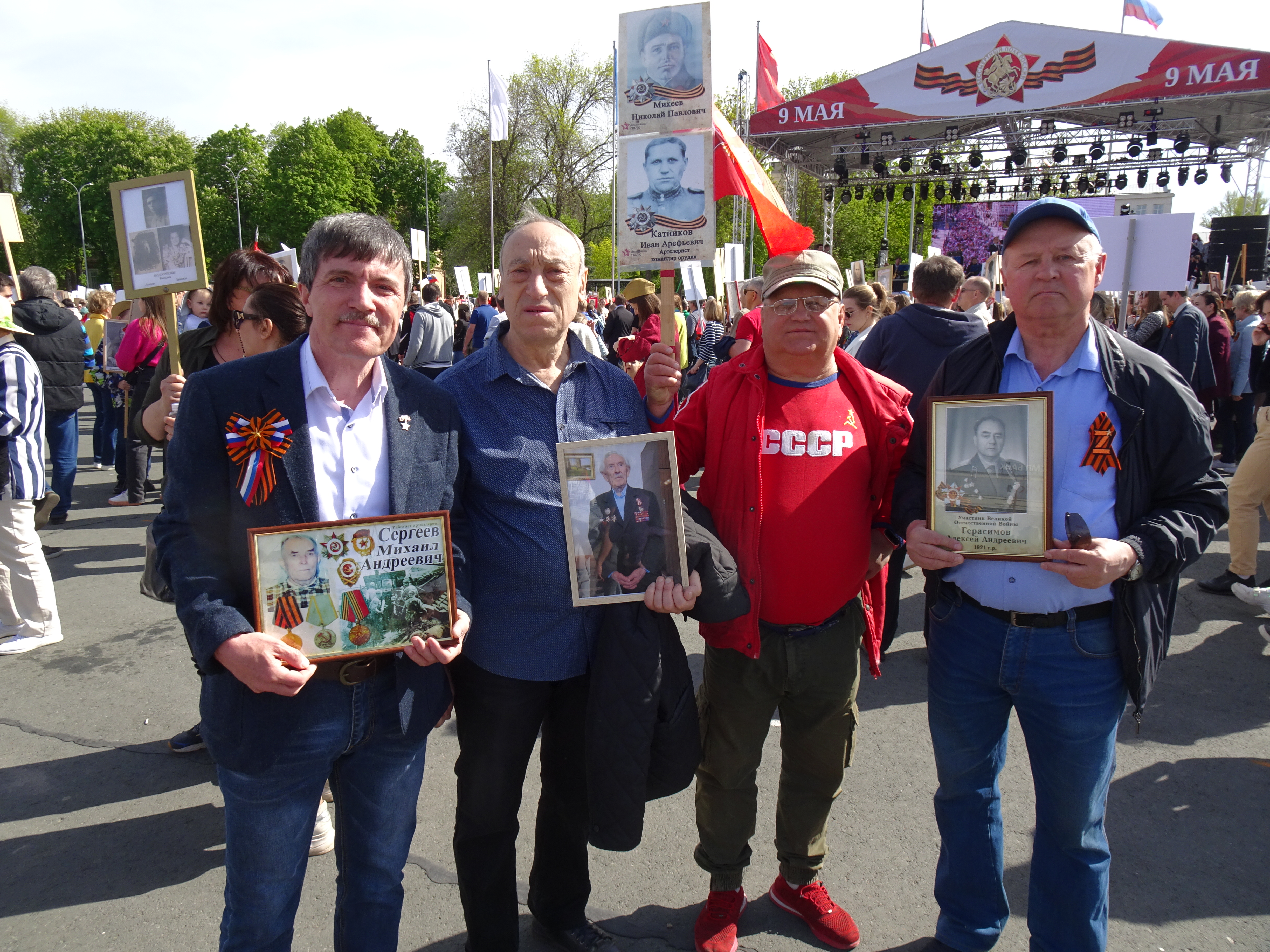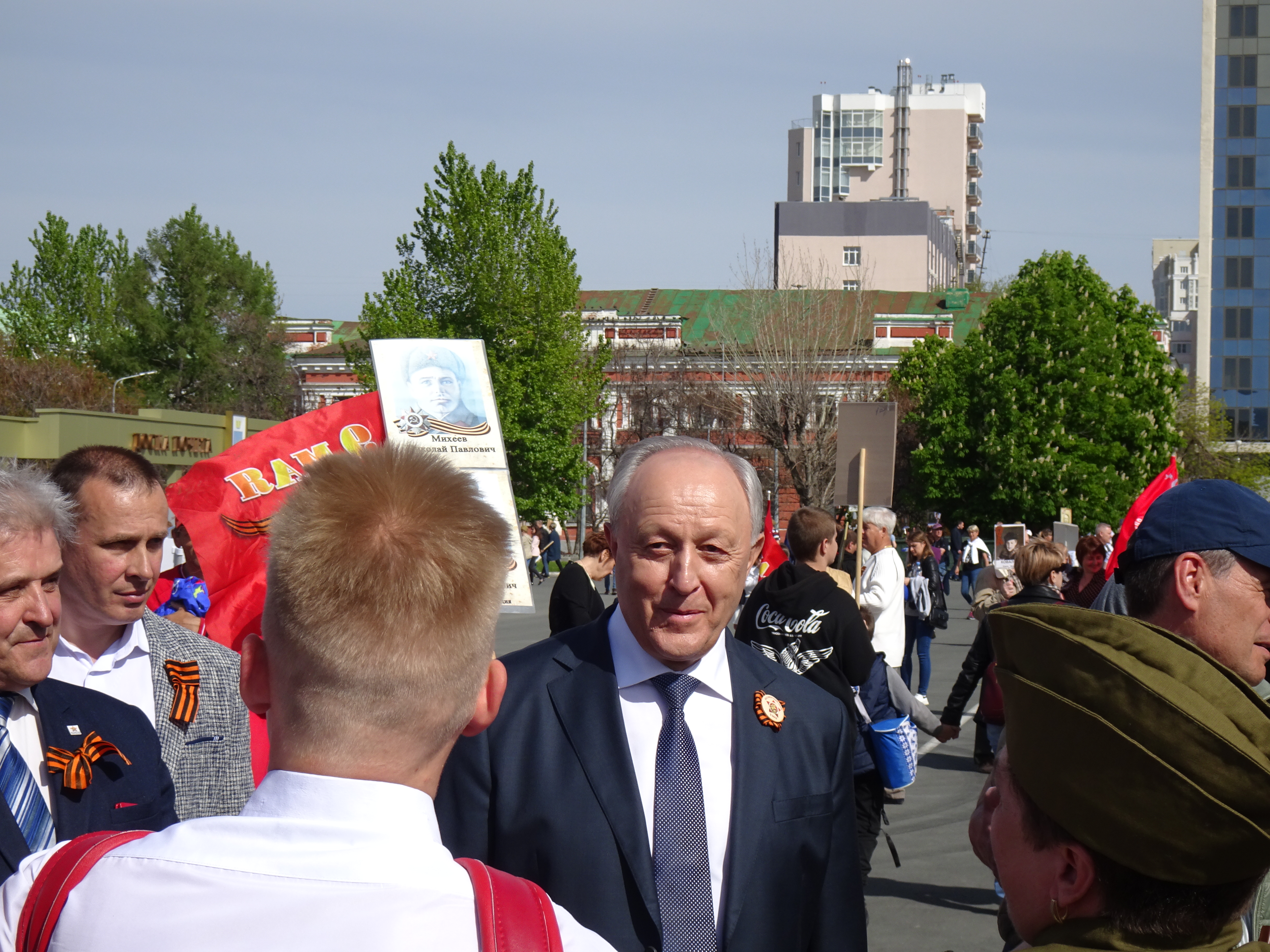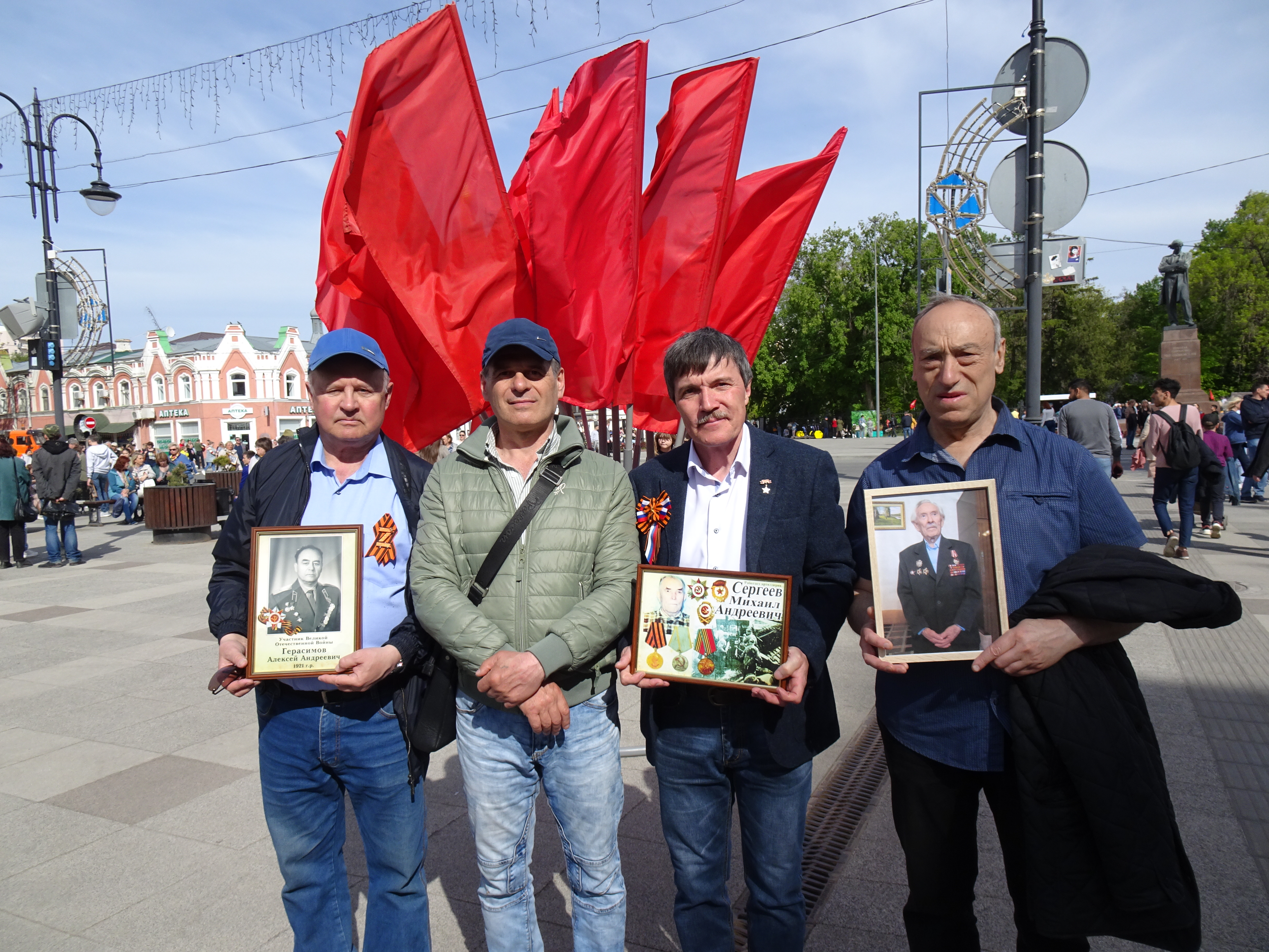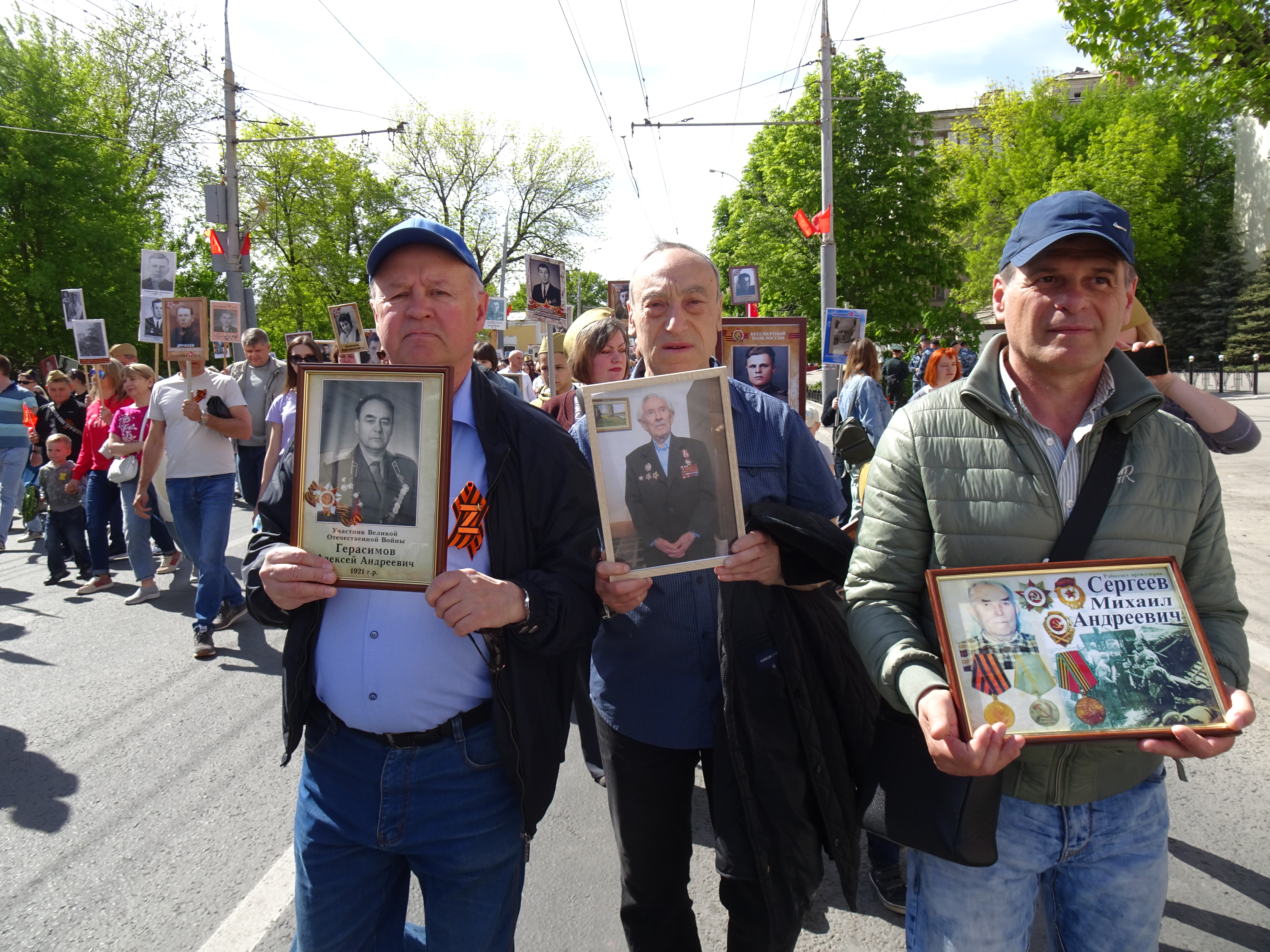 По официальным данным, более 120 тысяч саратовцев прошли с портретами своих родных, участвовавших в Великой Отечественной войне. В колонне были офицеры - участники боевых действий в горячих точках и кадеты, которые несли Знамя Победы площадью в 200 кв. м. Вместе со всеми шел оркестр, который исполнял песни и марши военных лет.