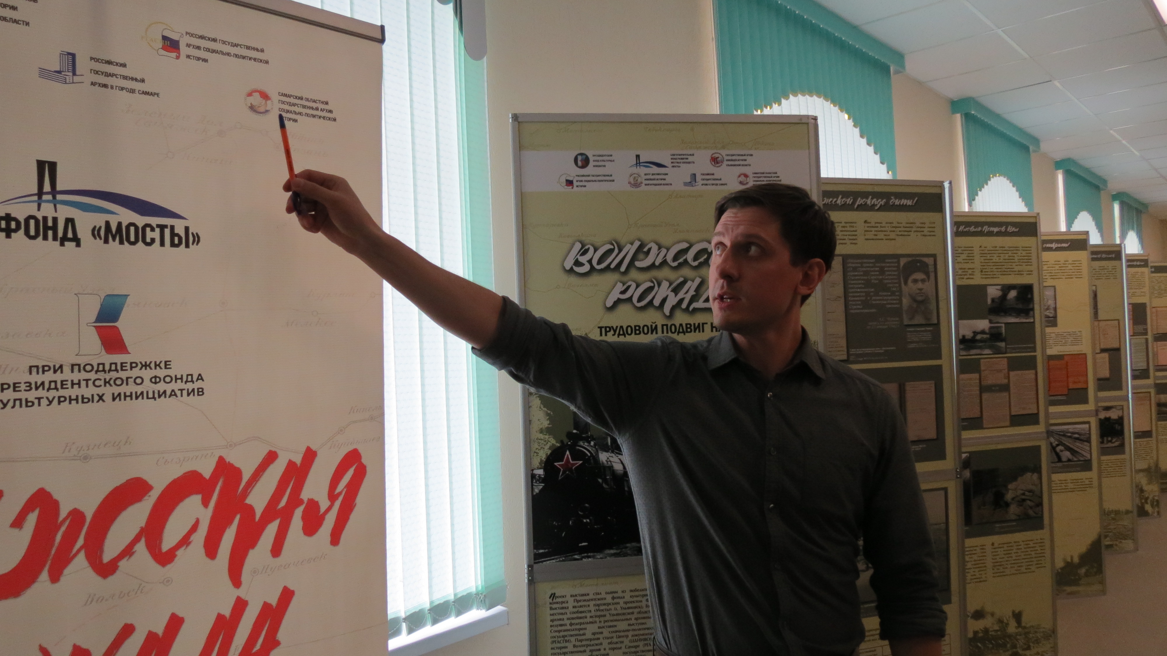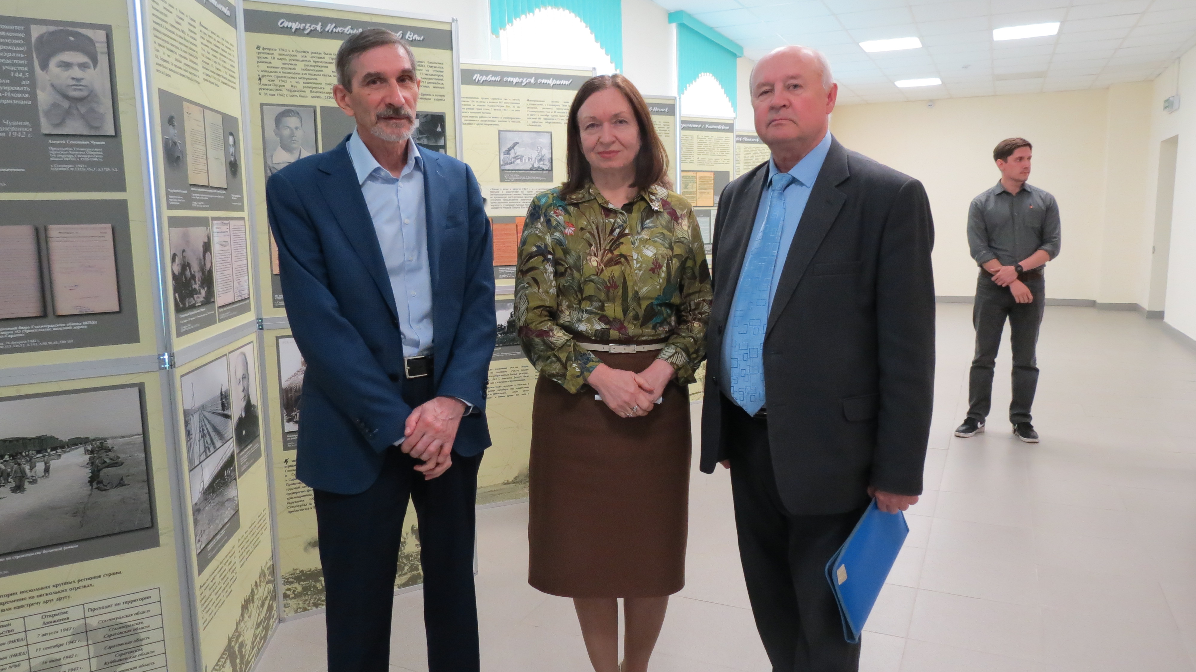 Представитель Государственного архива новейшей истории Ульяновской области (ГАНИУО), главный архивист Фадеев Игорь Викторович, который был экскурсоводом на этой выставке, рассказал коллегам – архивистам о том, что в 1942 году всего за несколько месяцев от станции Иловля (80 км. От Сталинграда) на север через Саратов, Сызрань и Ульяновск до Свияжска была протянута почти 1000-километровая магистраль, которая сыграла важную роль в обеспечении победы наших войск в Сталинградском сражении (1942-1943 гг.)
