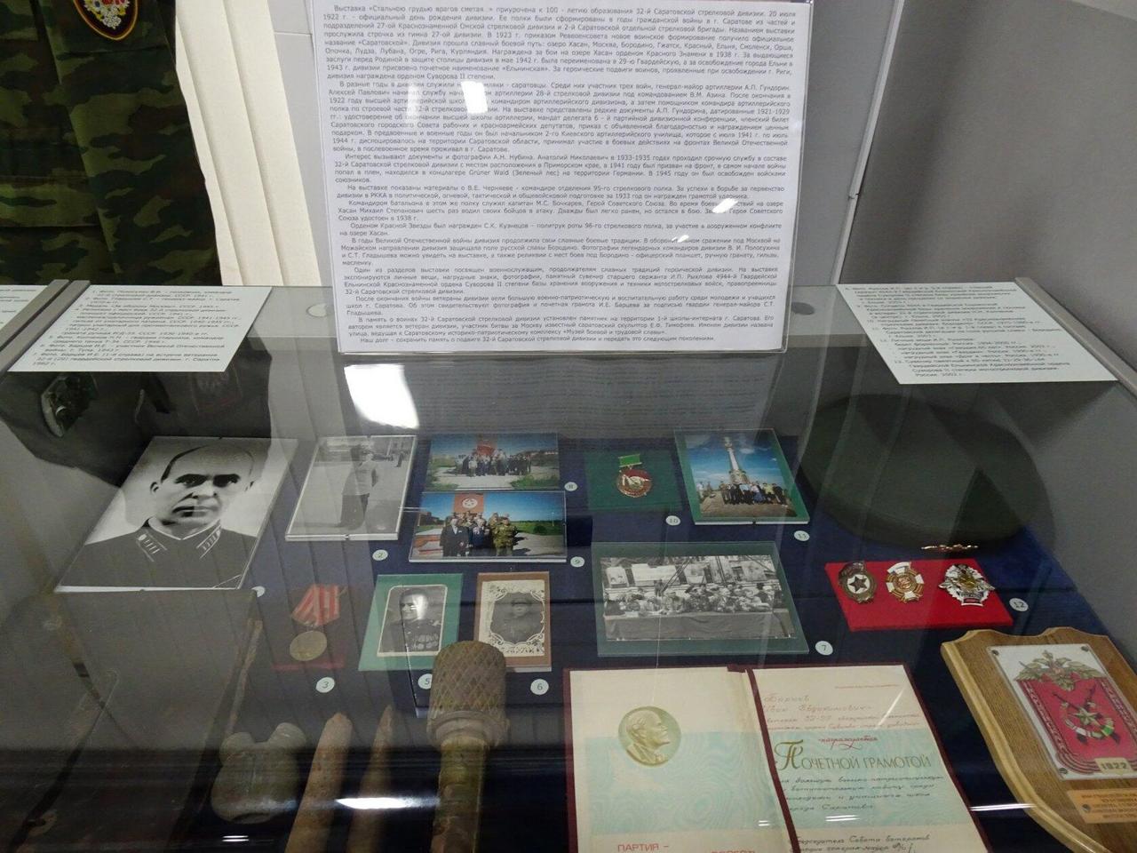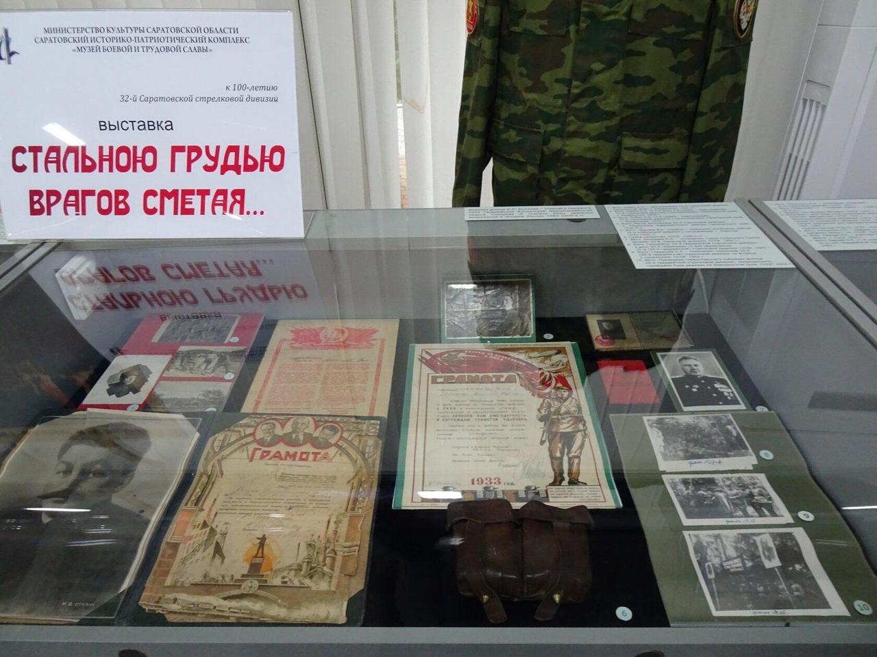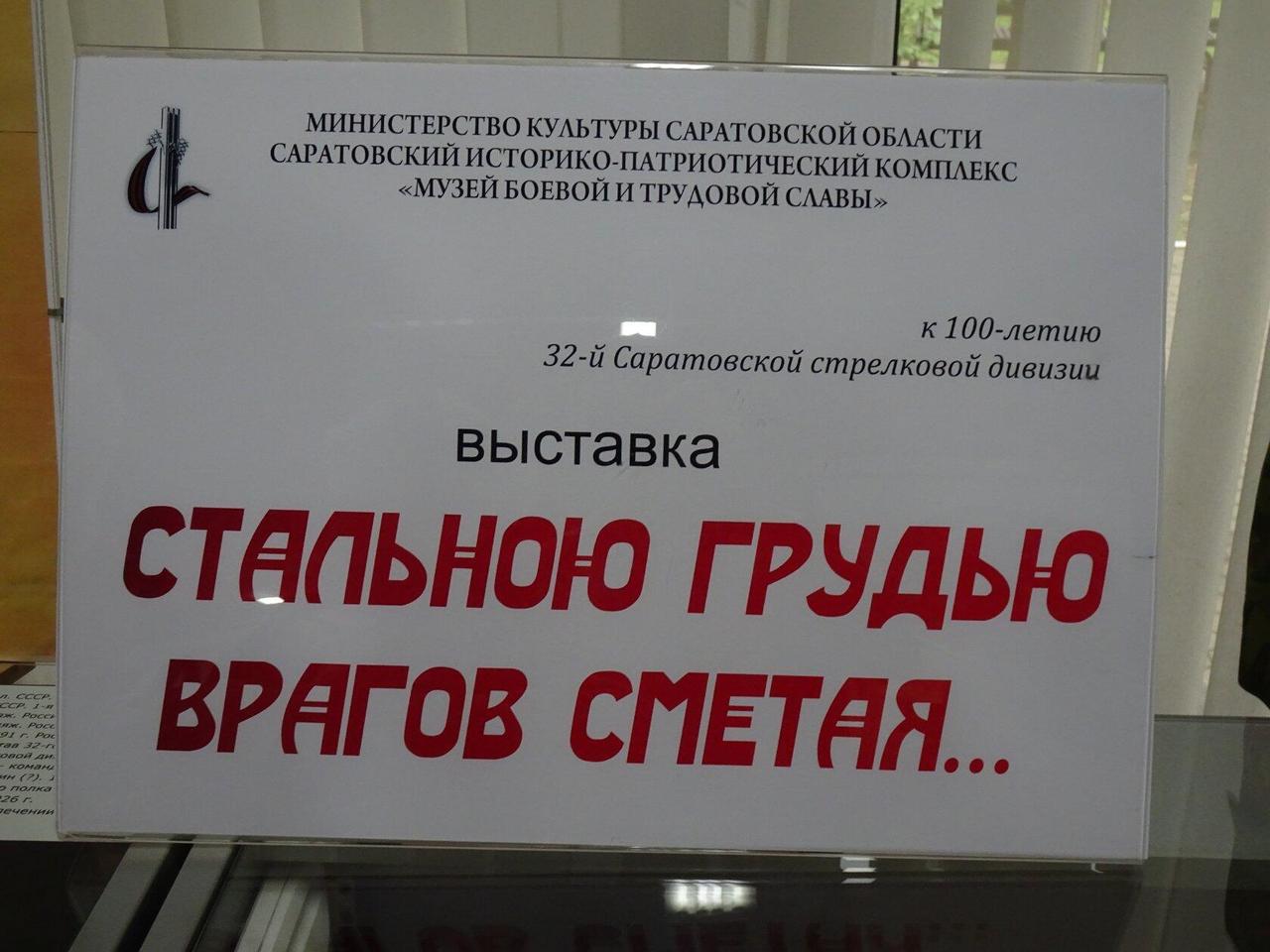 Выставка приурочена к 100–летию образования 32–й Саратовской стрелковой дивизии.