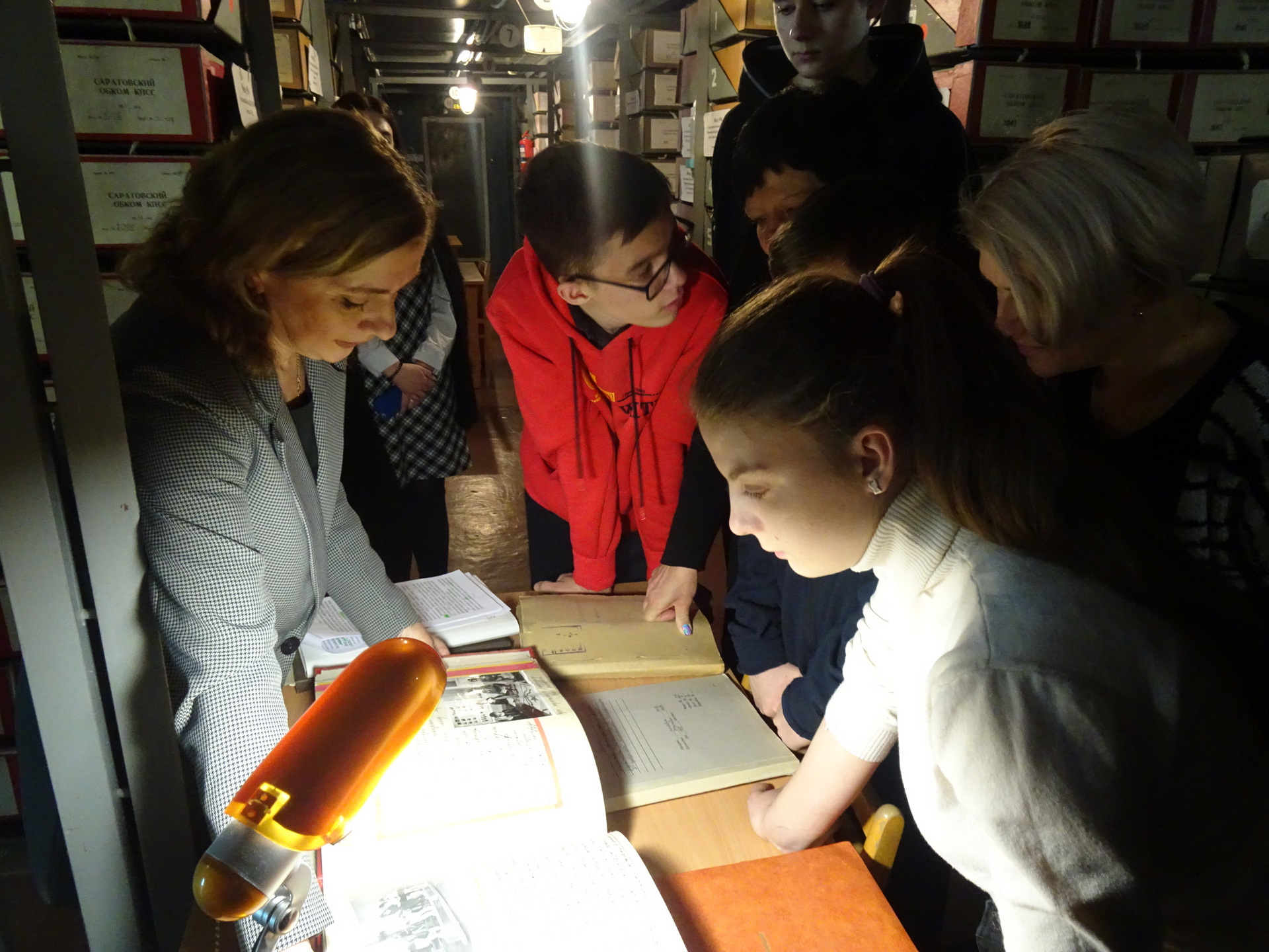 В ходе экскурсии гости смогли посетить читальный зал, изучить правила работы при обращении с подлинниками архивных документов, ознакомиться с выставкой «Повседневная жизнь советского человека сквозь призму личных документов». Учащиеся лично ознакомились с непосредственным процессом реставрации довоенных документов в лаборатории архива, а при посещении архивохранилища, которое вызвало особый интерес у школьников, воочию наблюдали условия хранения особо ценных источников по истории Саратовского Поволжья. В ходе экскурсии А.М. Михейчик были охарактеризованы архивные богатства ГАНИСО, продемонстрированы наиболее яркие и показательные документы партийно-комсомольских фондов. Ребята задали экскурсоводу многочисленные вопросы, а их преподаватели выразили пожелания дальнейшего сотрудничества с архивом.