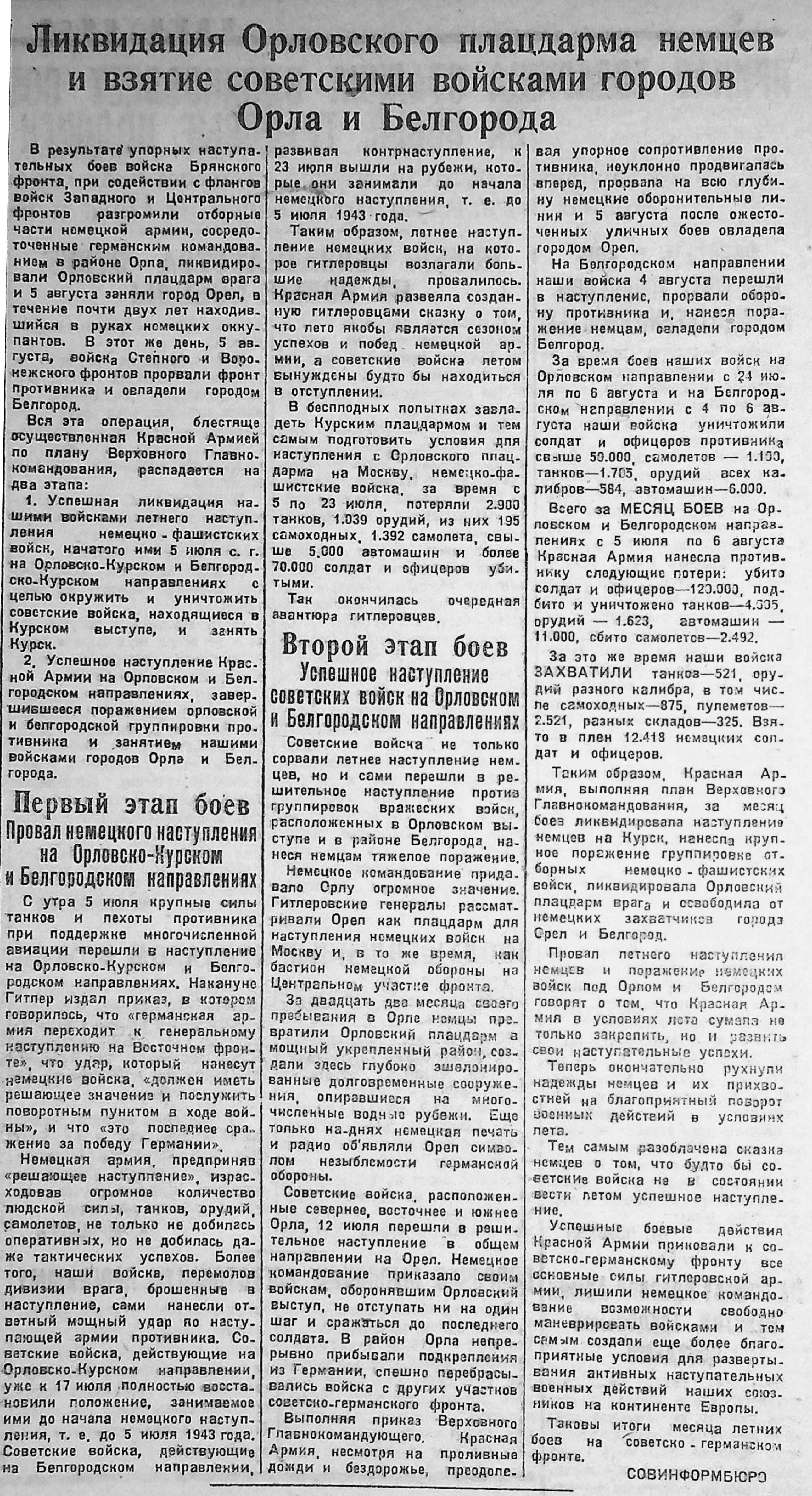 Это сражение – важнейшая часть стратегического плана летне-осенней кампании 1943 года. Оно положило путь к дальнейшим наступательным действиям Красной Армии в 1944-1945 гг.