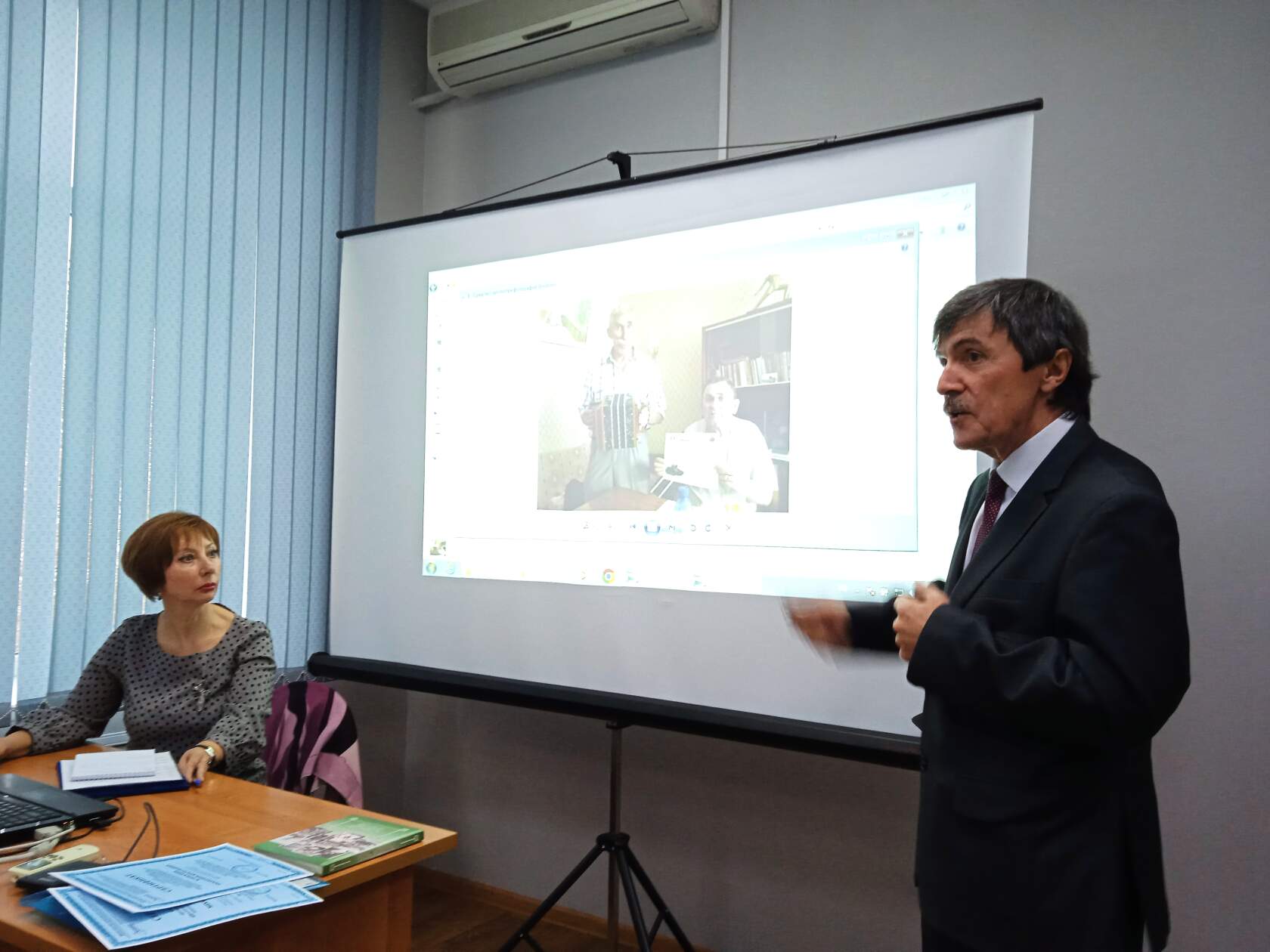 Начальник отдела ОГУ ГАНИСО Сергеев М.В. рассказал учителям и учащимся школы № 1 об архивных материалах, рассказывающих о военном лётчике Б.Н. Ерёмине, хранящихся в фондах ОГУ ГАНИСО. Поделился с активистами школьной музейной комнаты личными фотографиями и материалами про самолёт Як-1, который установлен в ГАУК Саратовский историко-патриотический комплекс Музей боевой и трудовой славы.